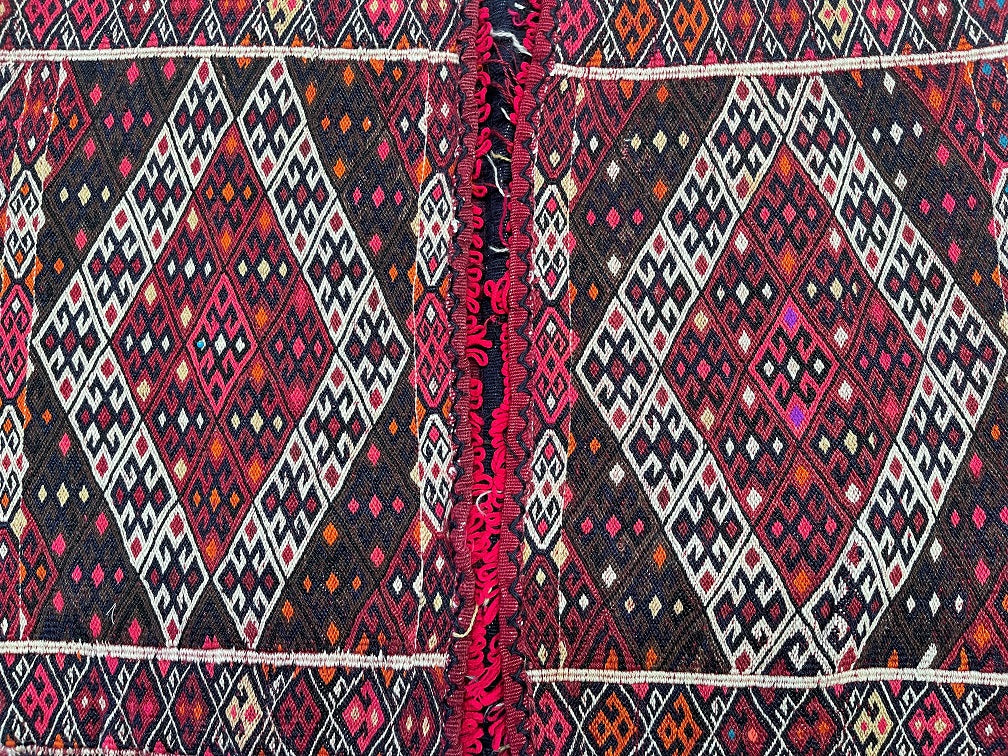 Collectable Handmade Tribal Persian Bakhtiari Saddle Rug. Above All It Is Woven Like A Tapestry With Needle Called Suzani. It Could Be Filled And Used As A Large Cushion Or Pillow, As A Floor Rug Or Seat Cover. It Also Has A Pure Hand Spun Wool Pile On Wool Base. Maroon Red, Beige, Brown, Orange And Black Tone Dyed Using Traditional Methods.