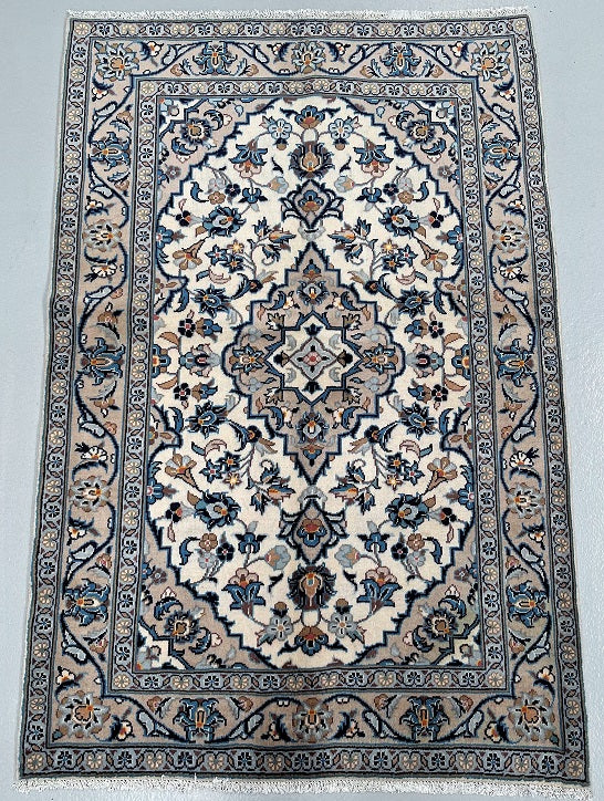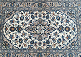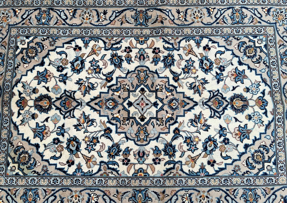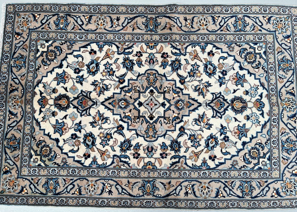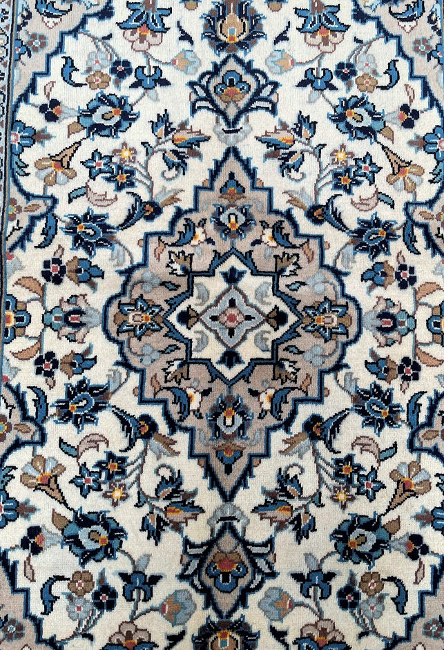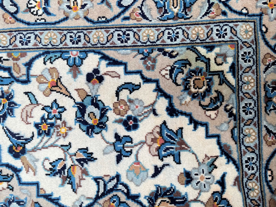 Gorgeous Coffee Table Size Authentic Handmade Persian Kashan Rug. Above All It Is Pure Lamb’s Wool Pile On Cotton Base. It Also Has Beige, Blue, Orange, Aqua And Brown Tones Dyed Using Traditional Methods.