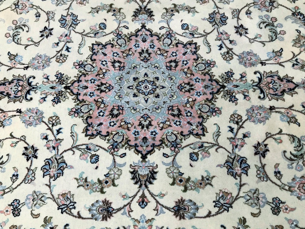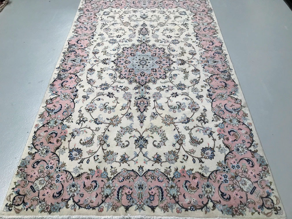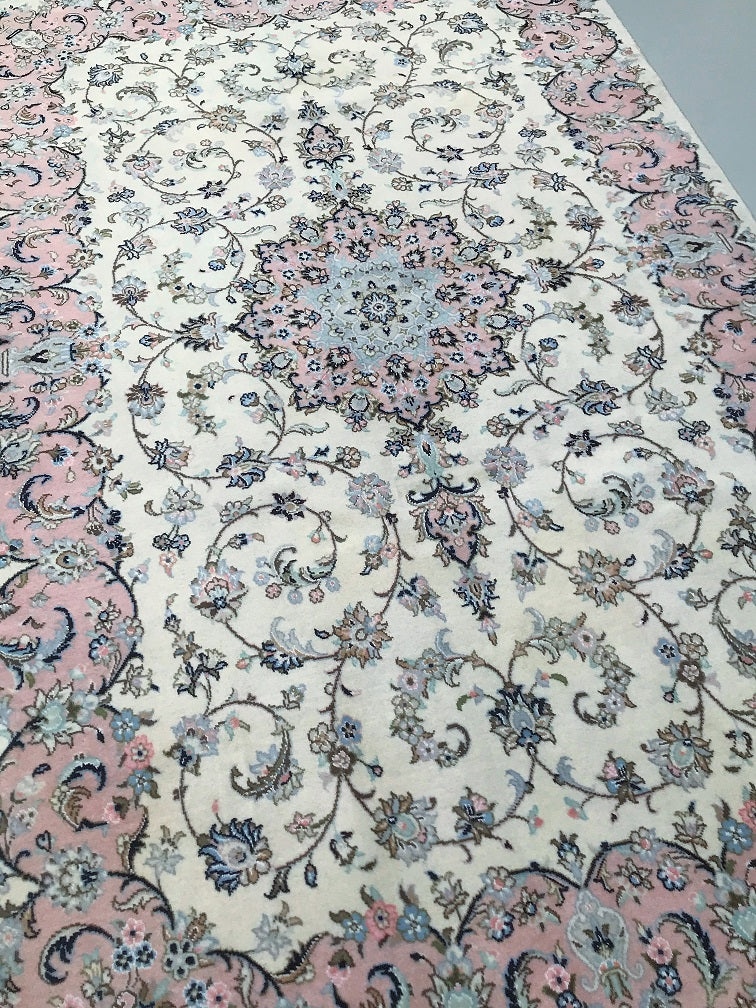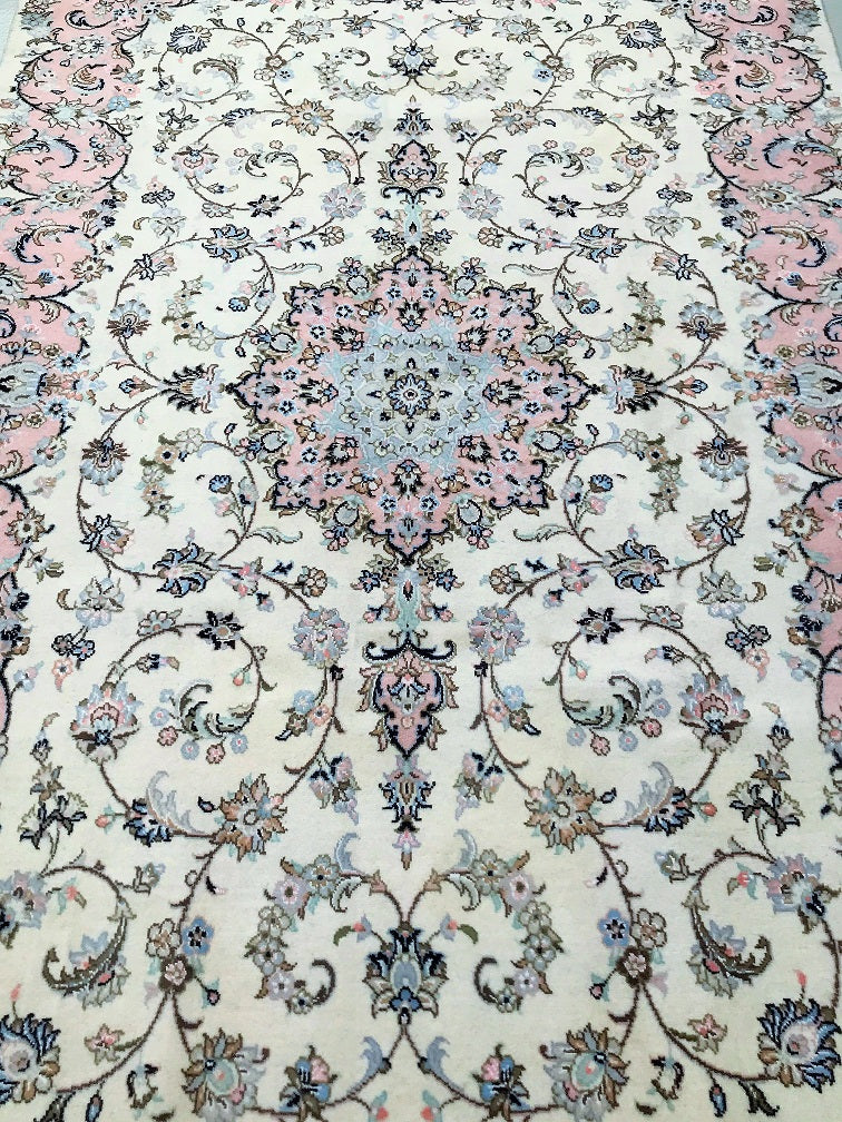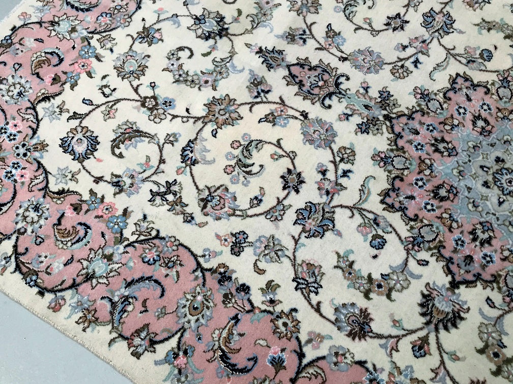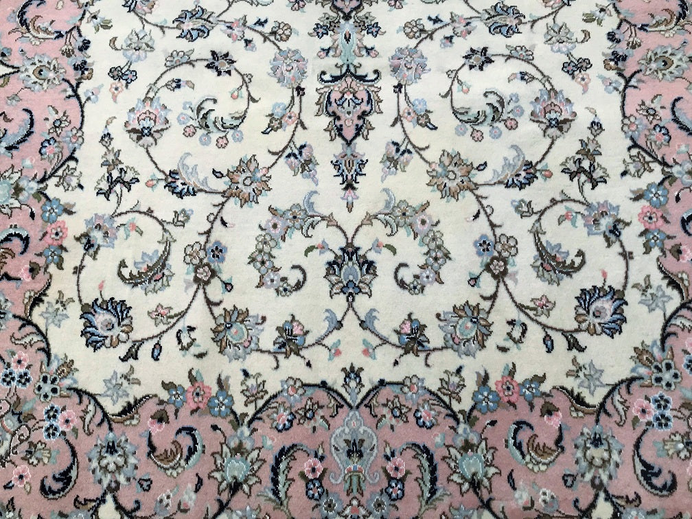 Superb Quality Room Size Authentic Handmade Vintage Persian Kashan Rug. It Has A Pure Lamb’s Wool Pile On Cotton Base. Stunning Beige And Soft Pink Tone Dyed Using Traditional Methods.