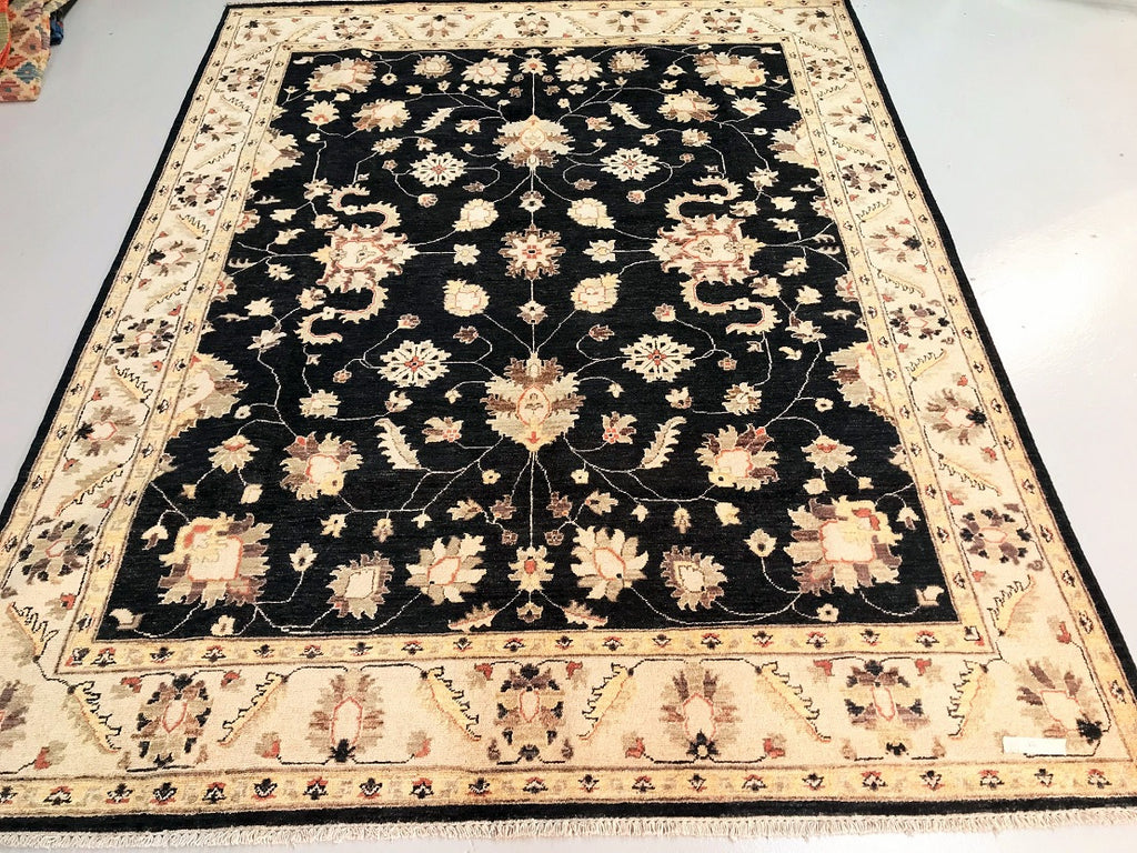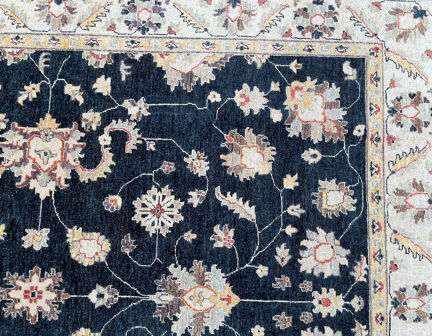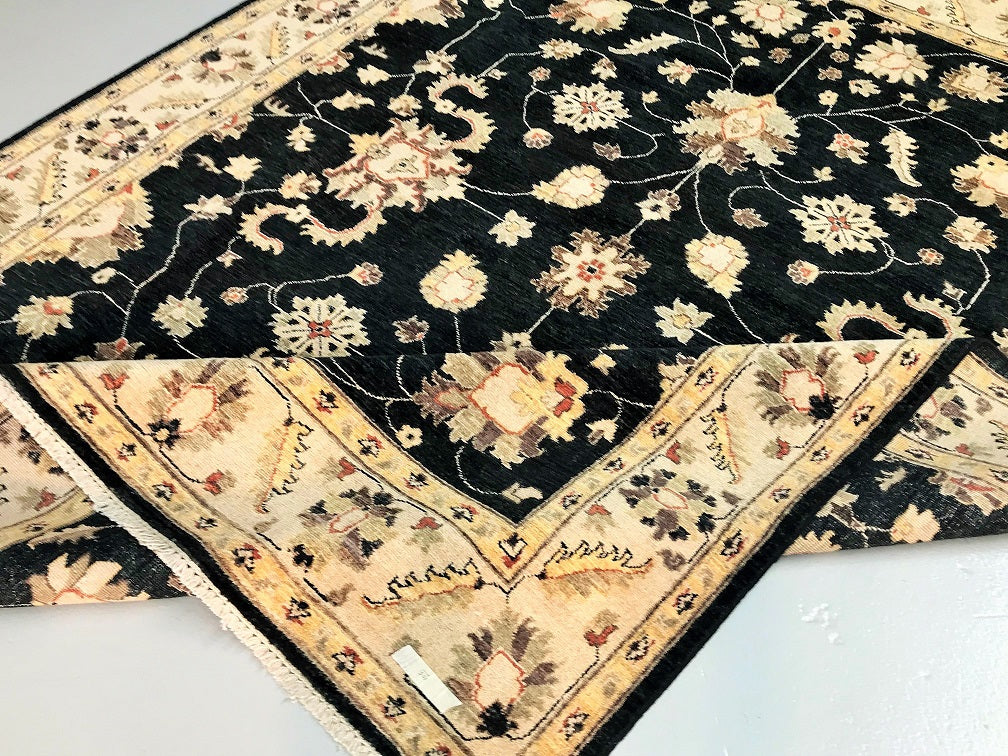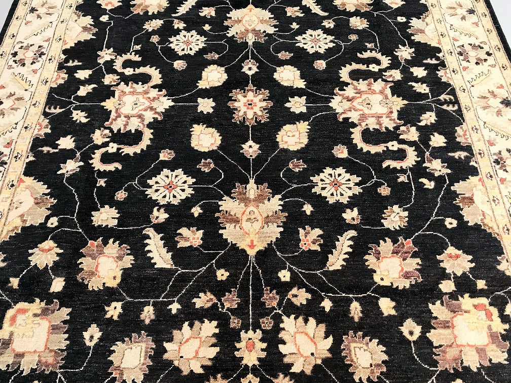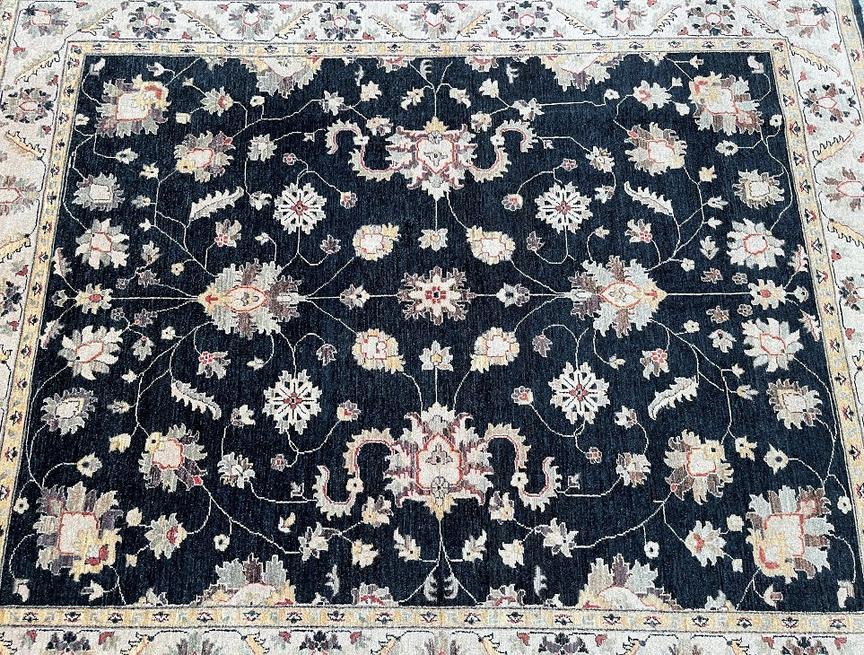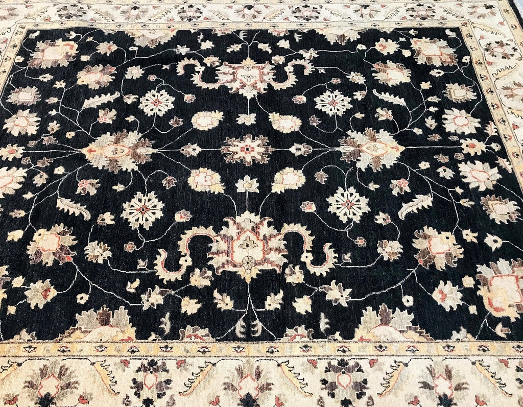 Squarish Room Size authentic Hand Knotted Afghan Chobi Rug. Above All It Has A Pure Hand Spun Wool Pile On Cotton Base. Black, Beige, Brown And Gold Tones Dyed Using Traditional Methods (Vegetable Dyes). Last Of True Woven Nomadic Art.
