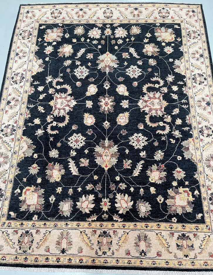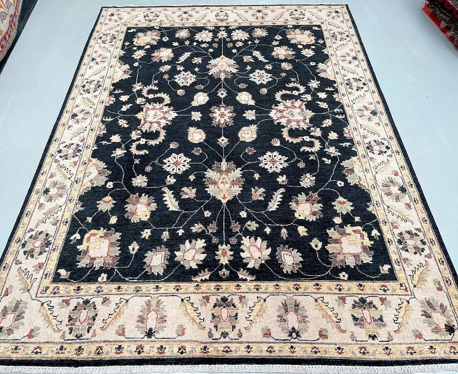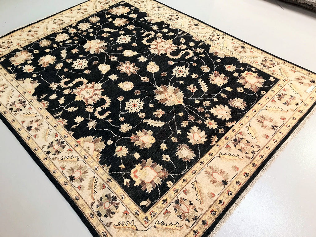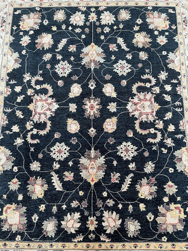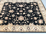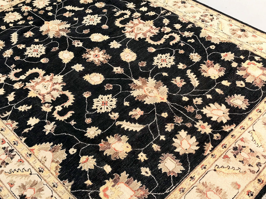 Squarish Room Size authentic Hand Knotted Afghan Chobi Rug. Above All It Has A Pure Hand Spun Wool Pile On Cotton Base. Black, Beige, Brown And Gold Tones Dyed Using Traditional Methods (Vegetable Dyes). Last Of True Woven Nomadic Art.