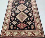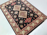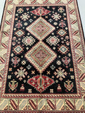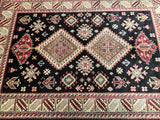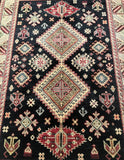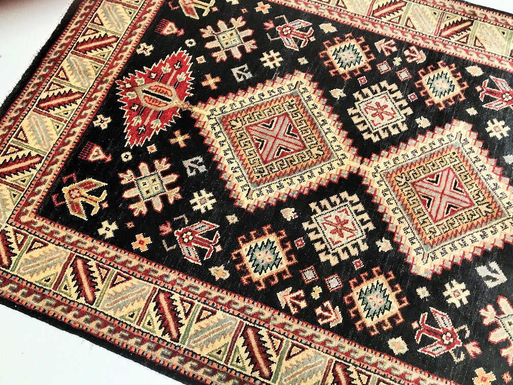Gorgeous Coffee Table Size Afghan Kazak Rug. Above All It Is Pure Hand Spun Wool Pile On Cotton Base. Rare Black and Gold Tone Dyed Using Traditional Methods (Vegetable Dyes). Last Of True Woven Tribal Art.