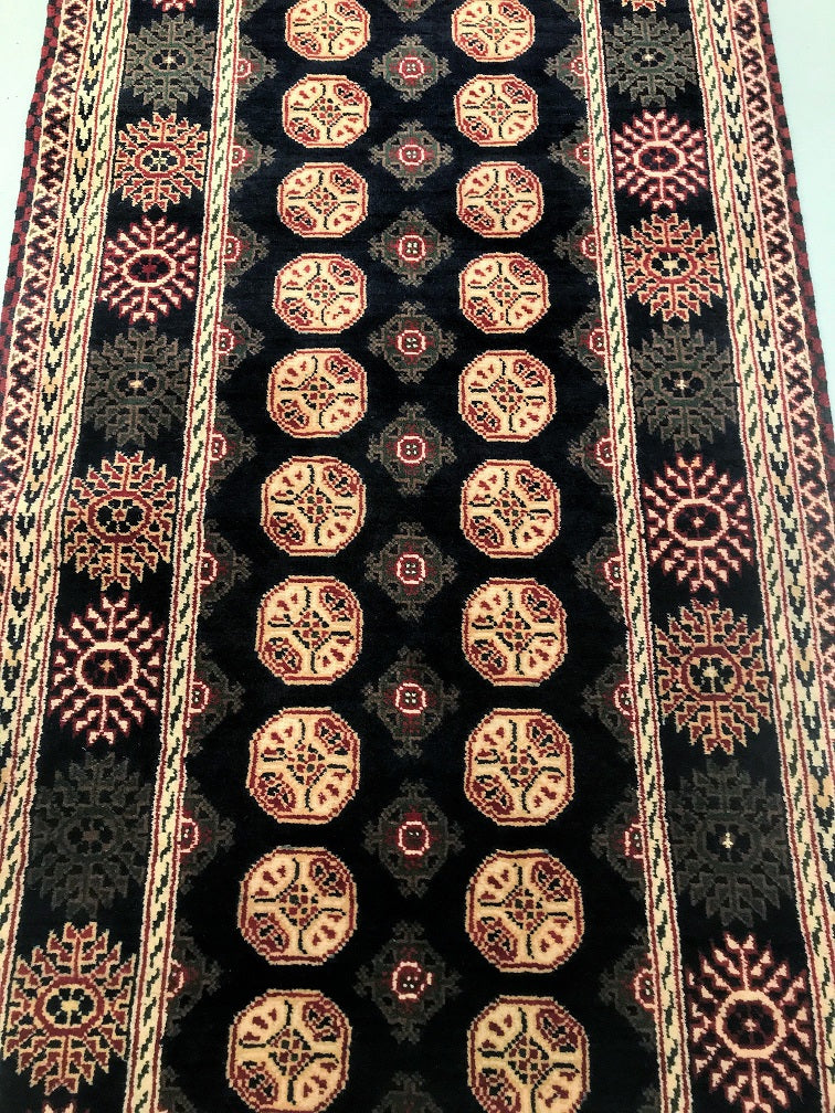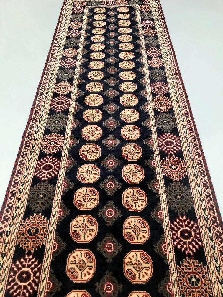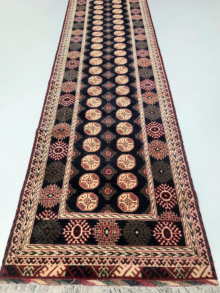 Fine Quality Hand Knotted Tribal Afghan Roshnai Hall Runner. Above All It Has A Pure Hand Spun Wool Pile On Wool Base. It Also Has A Deep Indigo Blue Tone Dyed Using Traditional Methods. This Runner Would Look Fantastic On Wooden Floor Board.