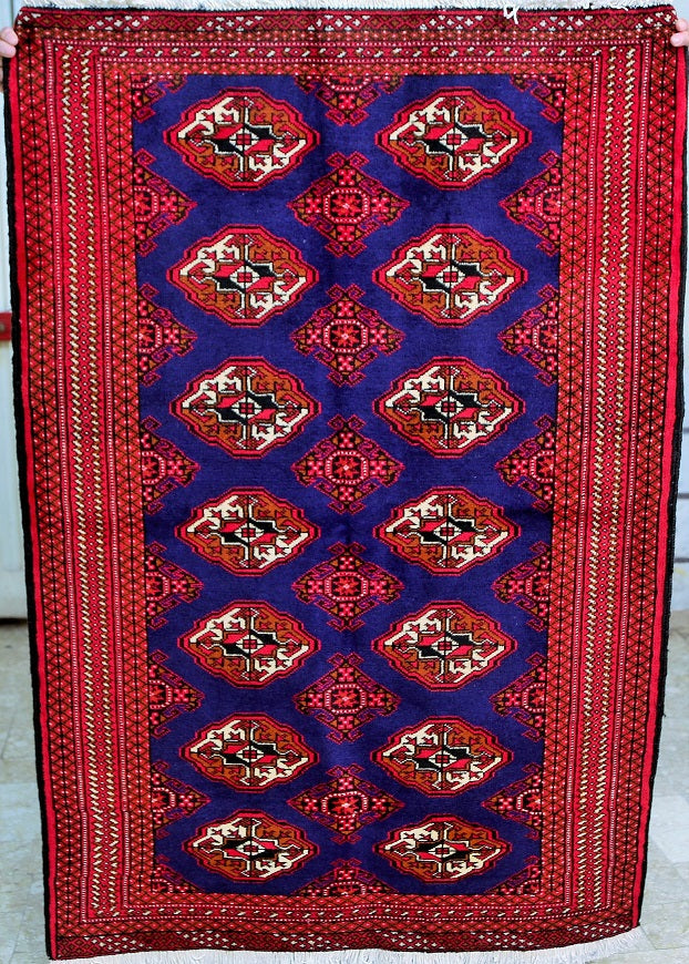 Certified Hand Knotted Persian Turkoman Rug 153x103cm