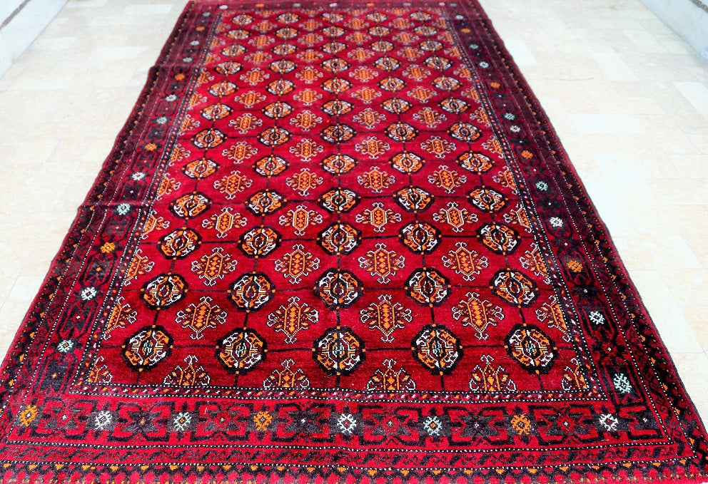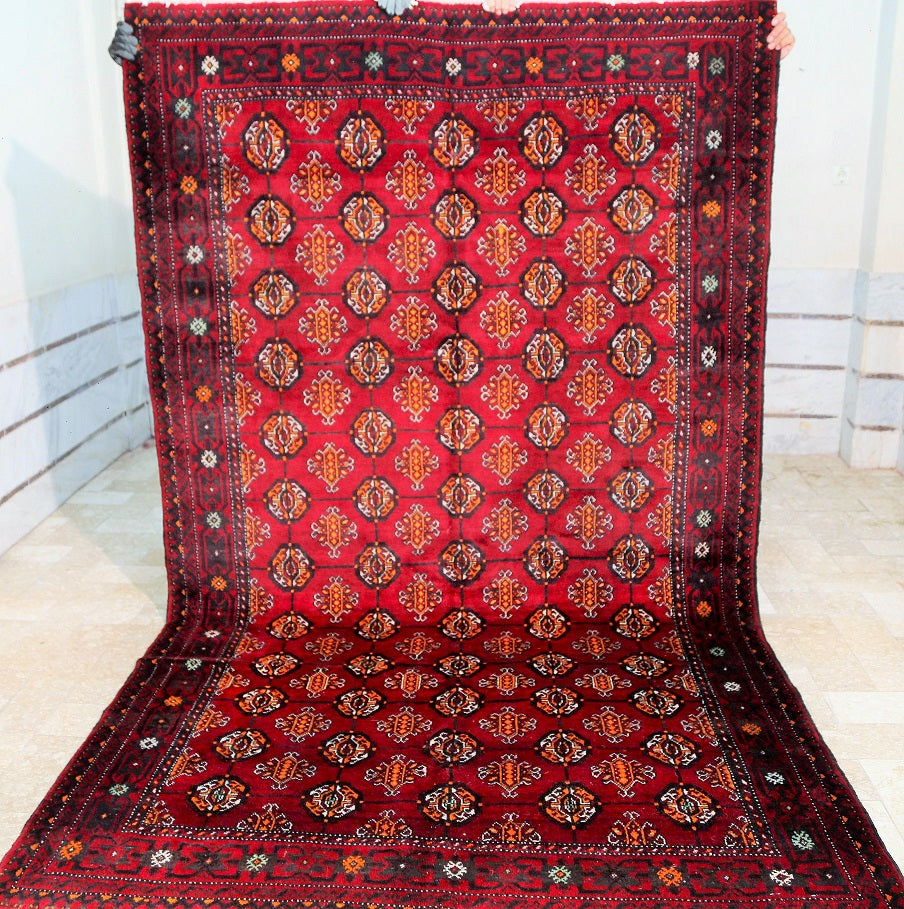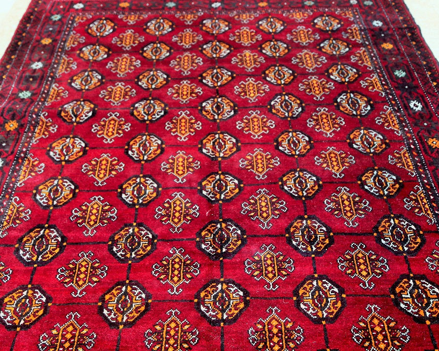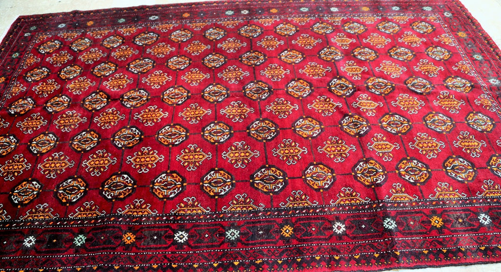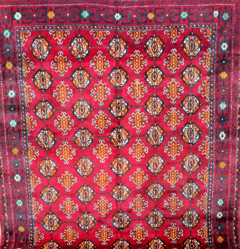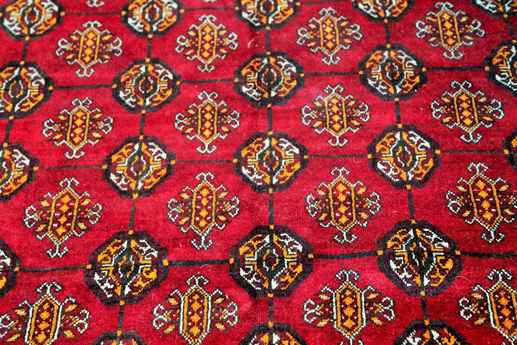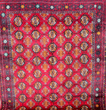 Full Room Size Hand Knotted Bokhara Design Persian Turkoman Rug. It Has A Pure Hand Spun Wool Pile On Cotton Base. Deep Red/Maroon Tone Dyed Using Traditional Methods.