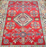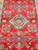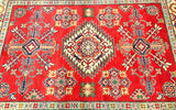 Decorative Coffee Table Size Afghan Kazak Rug. Above All It Is Pure Hand Spun Wool Pile On Cotton Base. Soft Red Tone Dyed Using Traditional Methods (Vegetable Dyes). Last Of True Woven Tribal Art.