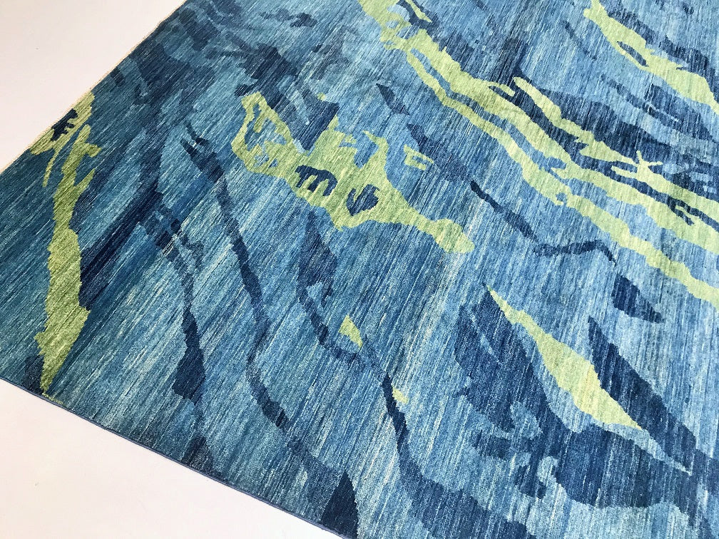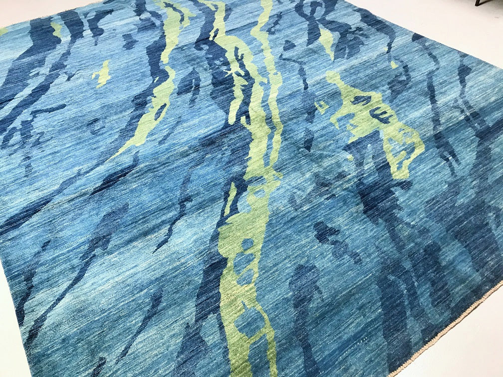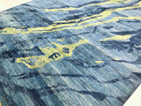 Large Room Size Contemporary Design Afghan Kazak rug. Above All It Is Pure Hand Spun Wool Pile On Cotton Base. Decorative Blue Tone Dyed Using Traditional Methods (Vegetable Dyes). Last Of True Woven Tribal Art.