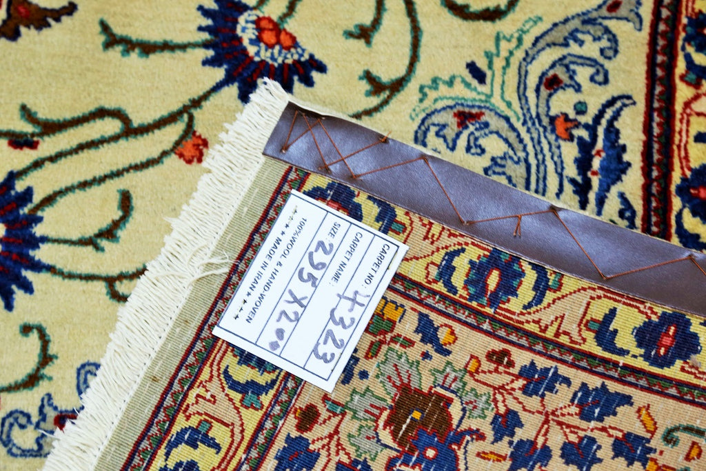 Rare Full Room Size Hand Knotted Birjand Rug. Above All It Has A Pure Lamb’s Wool Pile On Fine Cotton. Unique Lime/Beige Background Dyed Using Traditional Methods, Fine Quality From City Of Birjand.