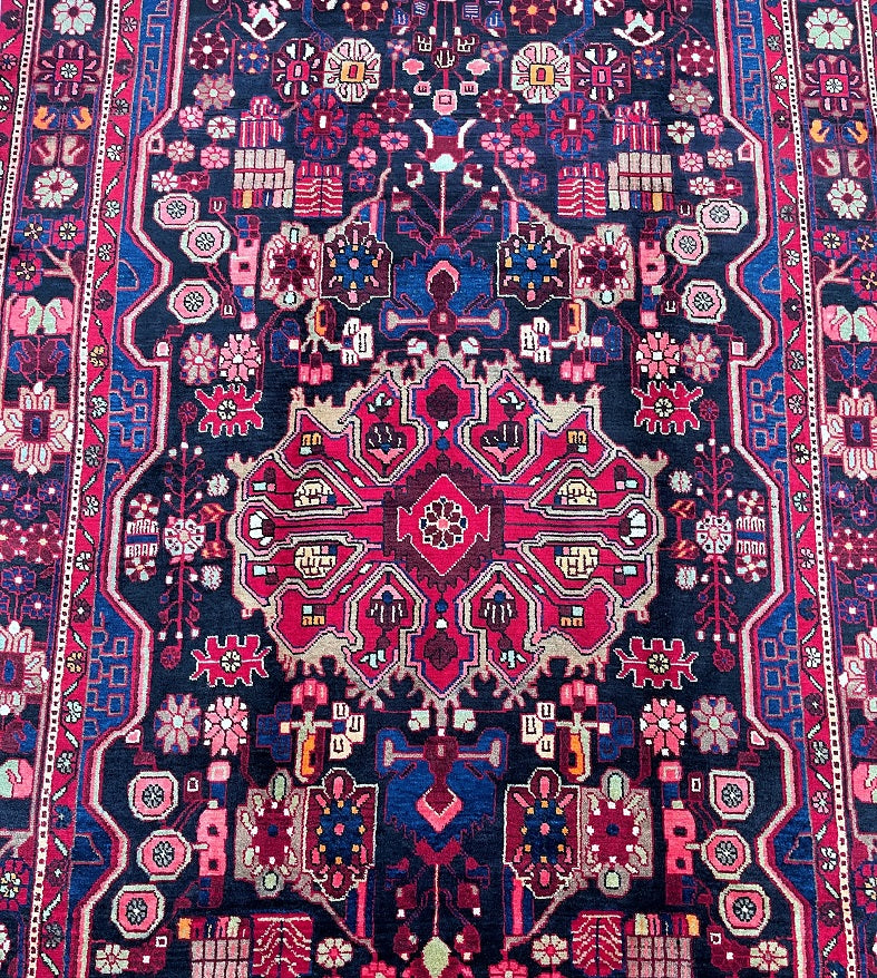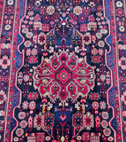 Full Room Size Hand Knotted Tribal Nahavand Rug. Above All It Is Hard To Find Tribal Design Handmade In Larger Sizes. Pure Hand Spun Wool Pile On Cotton Base. It Also Has A Rich Indigo Blue Tone Dyed Using Traditional Methods.