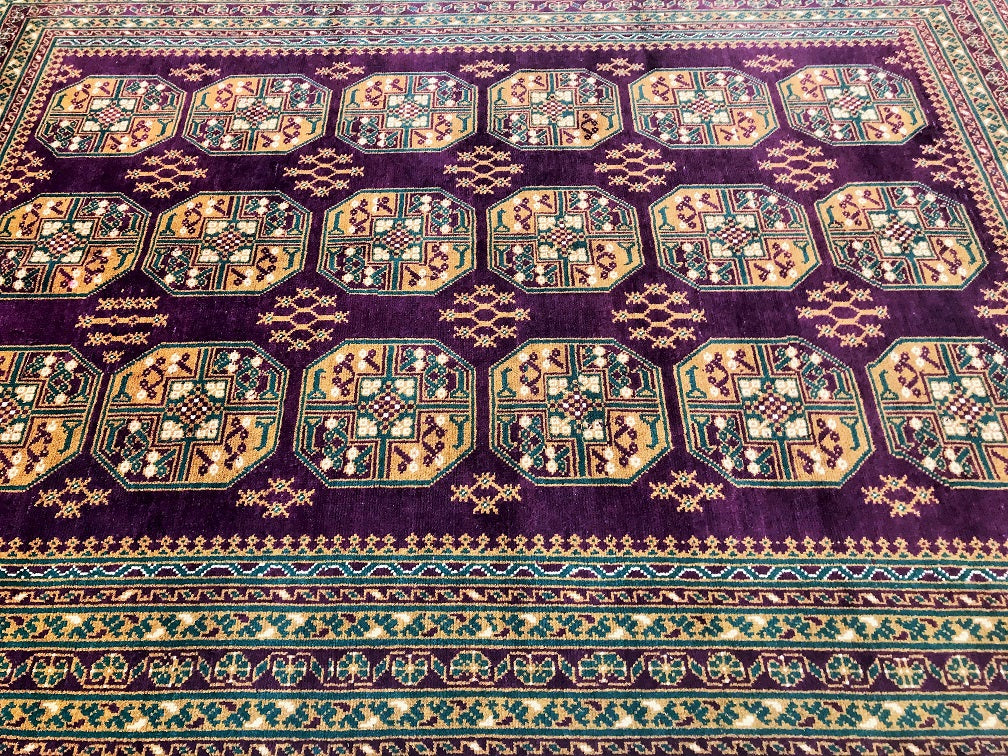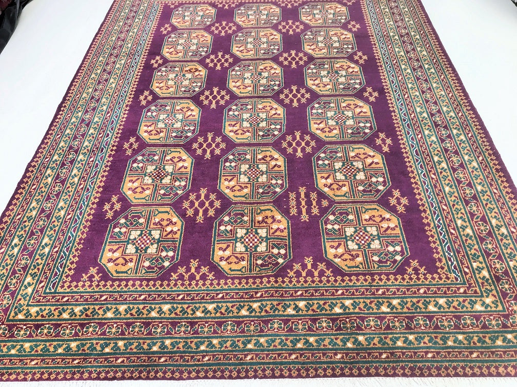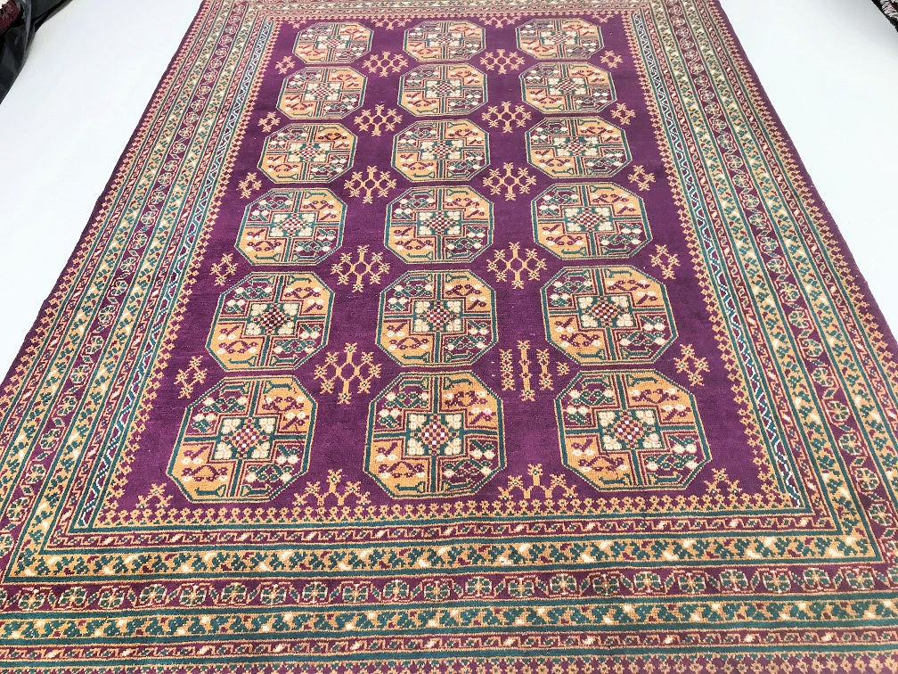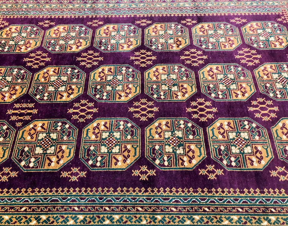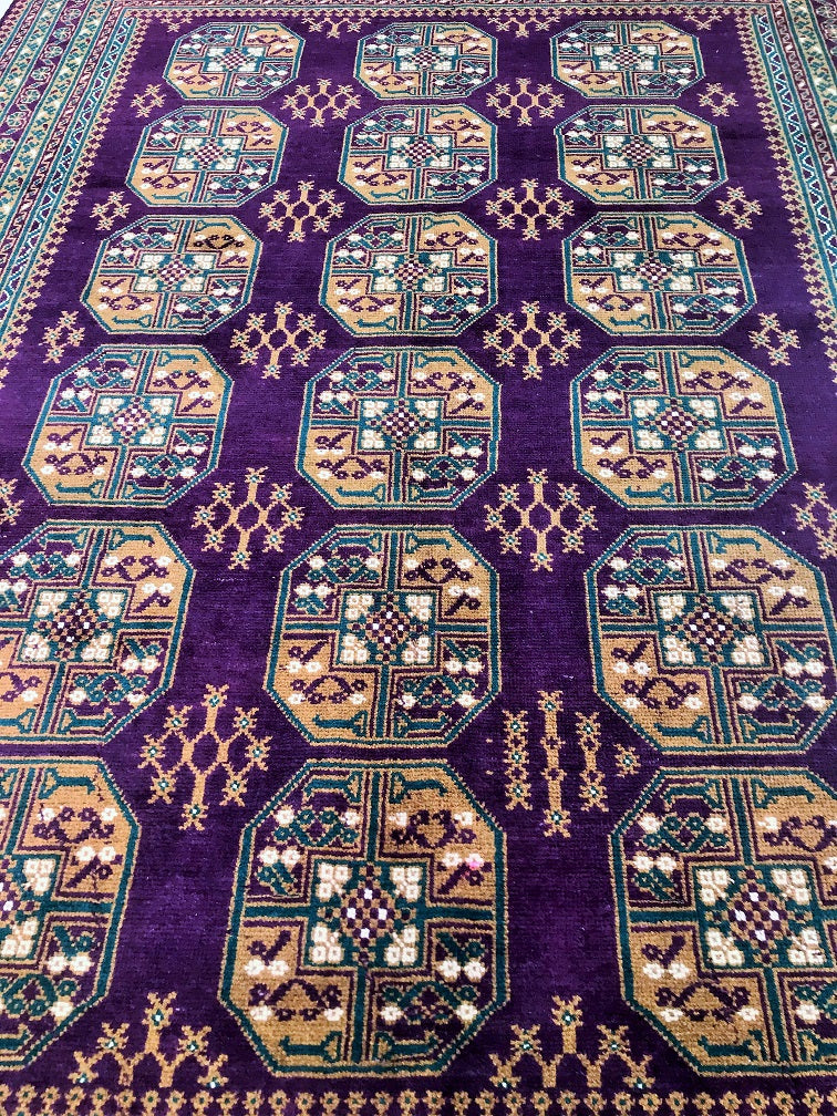 Full Room Size Hand Knotted Afghan Aqcha Rug. Above All It Has A Pure Hand Spun Wool Pile On Cotton Base. It Also Has A Rare Purple Tone Dyed Using Traditional Methods.