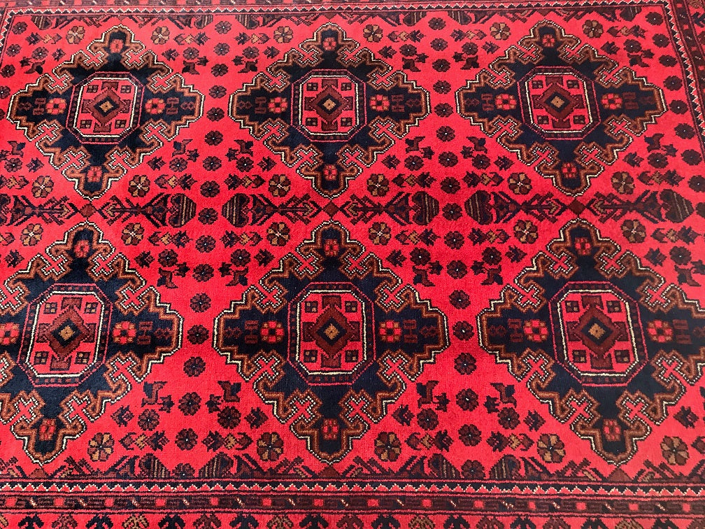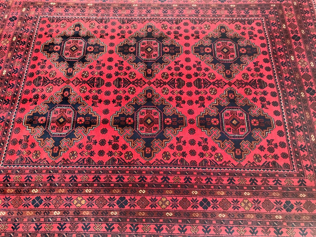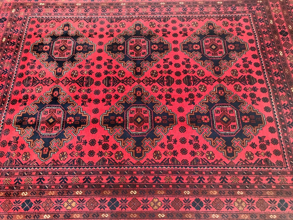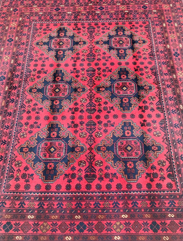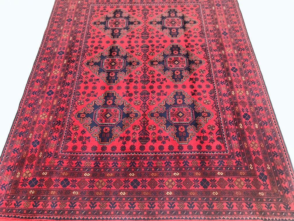 Unique Room Size Size Hand Knotted Afghan Kunduz Rug. Above All It Is Pure Hand Spun Wool Pile On Wool Base. It Also Has A Rare Burgundy/Burnt Terracotta Tone Dyed Using Traditional Methods.