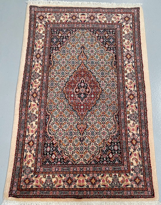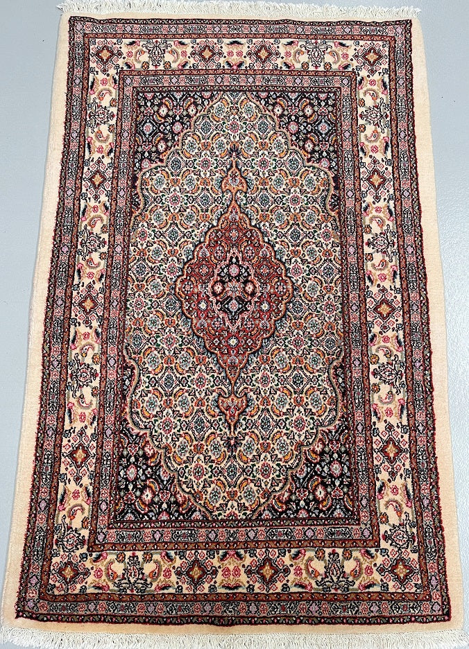 Fine Authentic Handmade Persian Birjand Mood Rug. Above All It Has A Pure Lamb’s Wool Pile On Fine Cotton, Beige Background Dyed Using Traditional Methods.