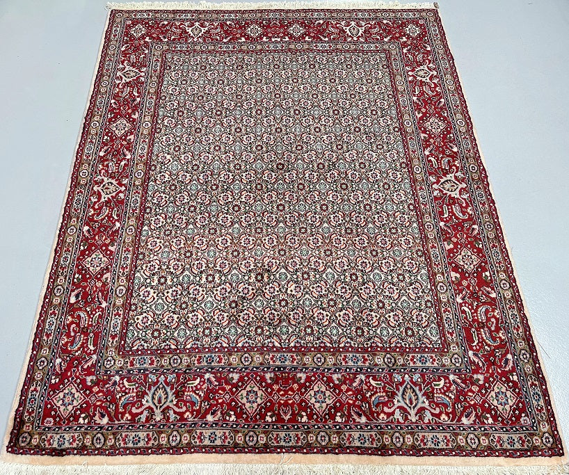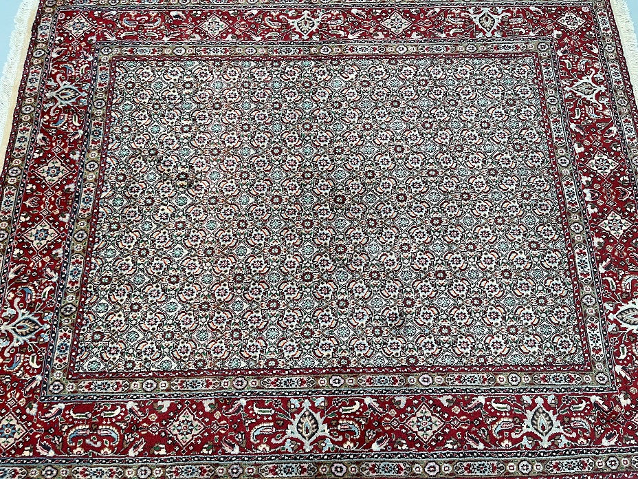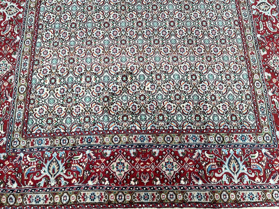 Superb Authentic Handmade Persian Birjand Rug. Above All It Has A Lamb’s Wool And Touch Of Silk Pile on Fine Cotton Base. It Also Has A Beige, Blue, Green, Orange, Pink And Maroon Tones Dyed Using Traditional Methods.