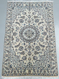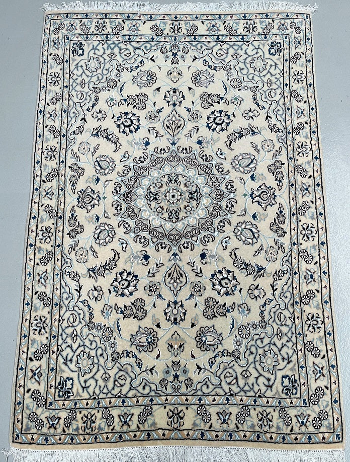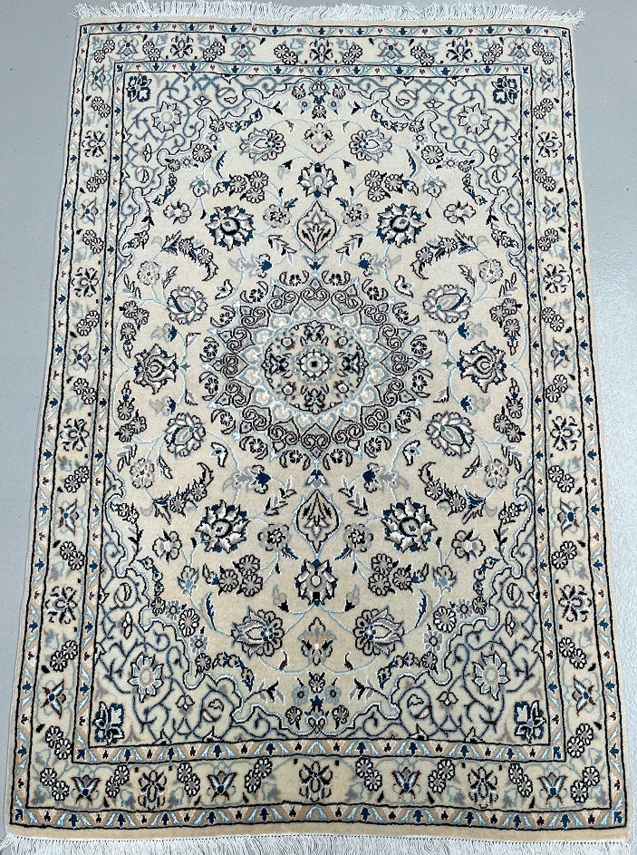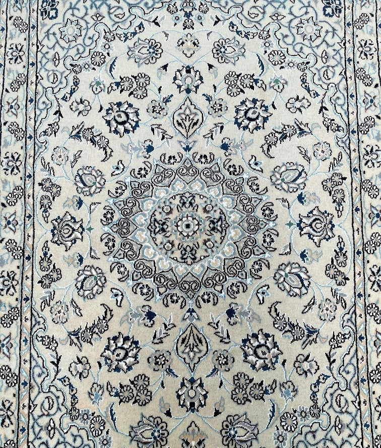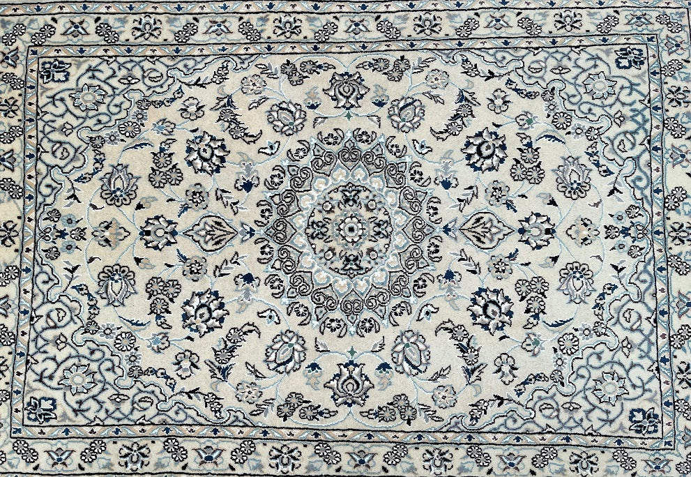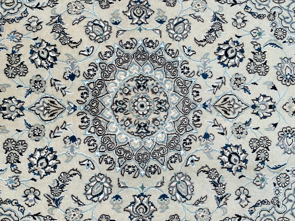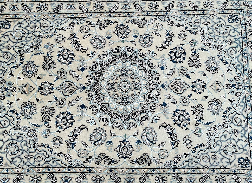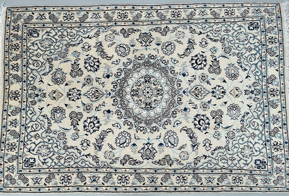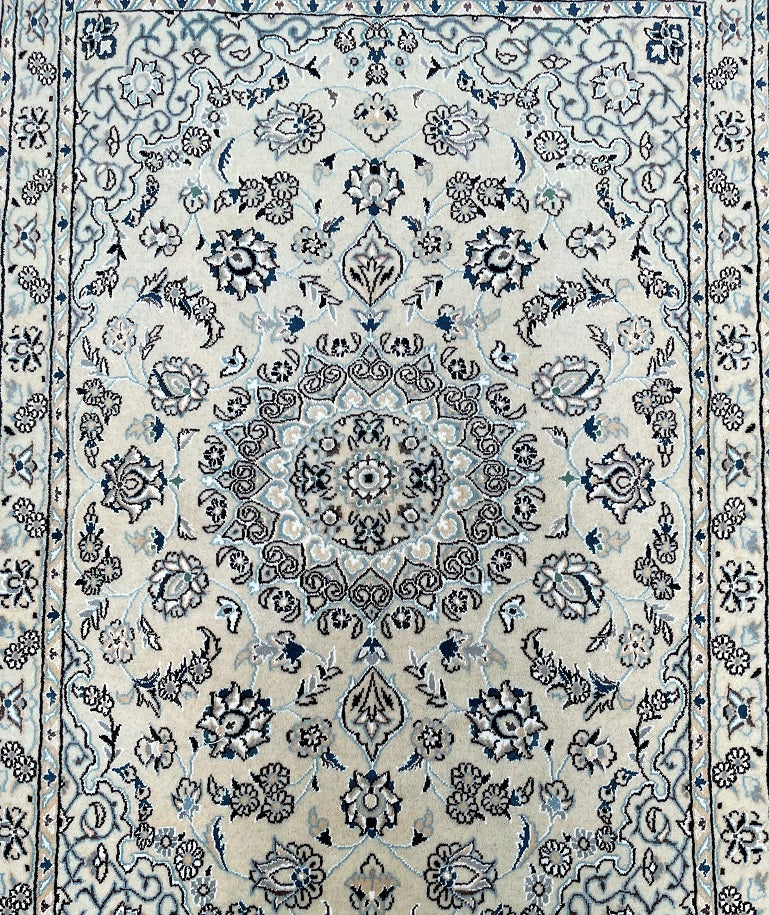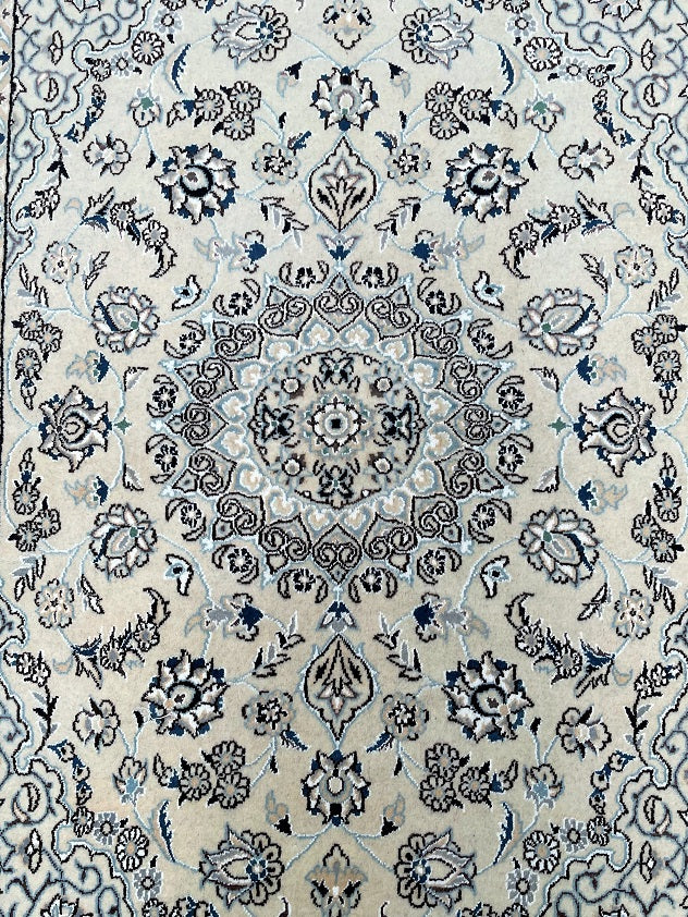 Coffee Table Size Authentic Handmade Persian Nain Rug. Above All It Has A Pure Wool Pile on Fine Cotton Base. Ivory Beige And Blue Tones Dyed Using Traditional Methods.