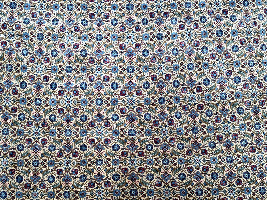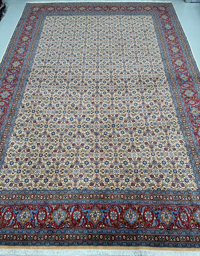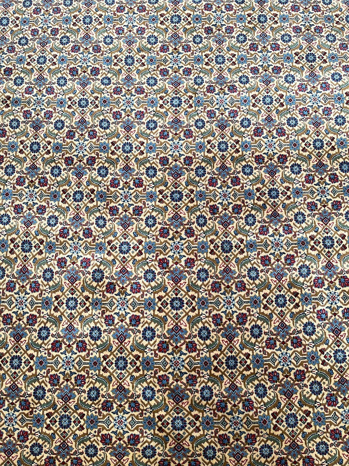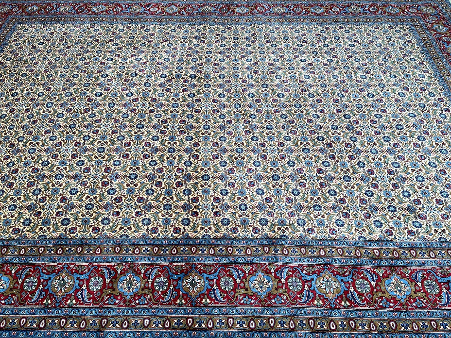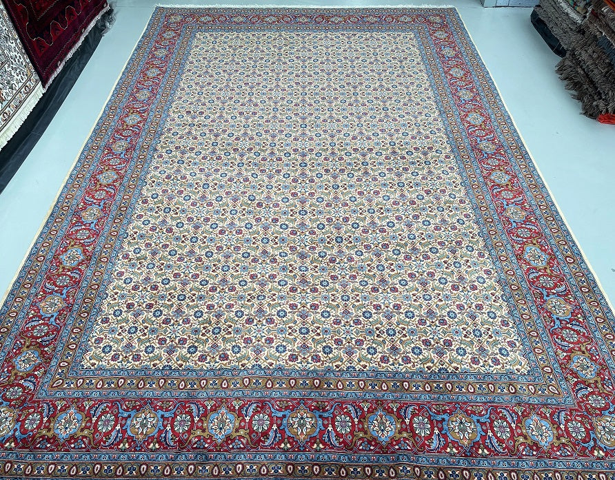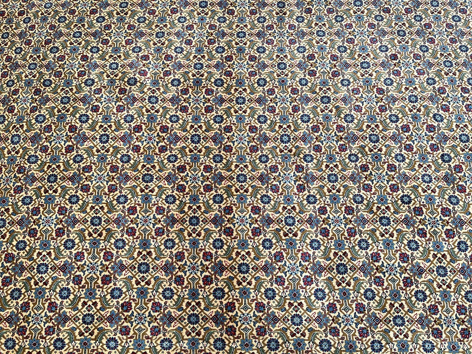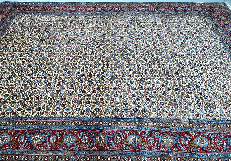 Superb Large Room Size Authentic Persian Tabriz rug. Above All This Is A Well Knotted Piece With A High Density. It Also Has A Pure Wool Pile On Cotton Base. It Also Has A Cream With Hint Of Gold, Blue, Ocher, Red And Soft Tones Dyed Using Traditional Methods.