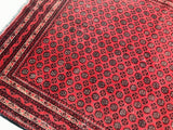 Fine Coffee Table Size Hand Knotted Khajeh Roshnai Rug. Above All It Is Pure Hand Spun Wool Pile On Wool Base. It Also Has Deep Red Tone Dyed Using Traditional Methods.