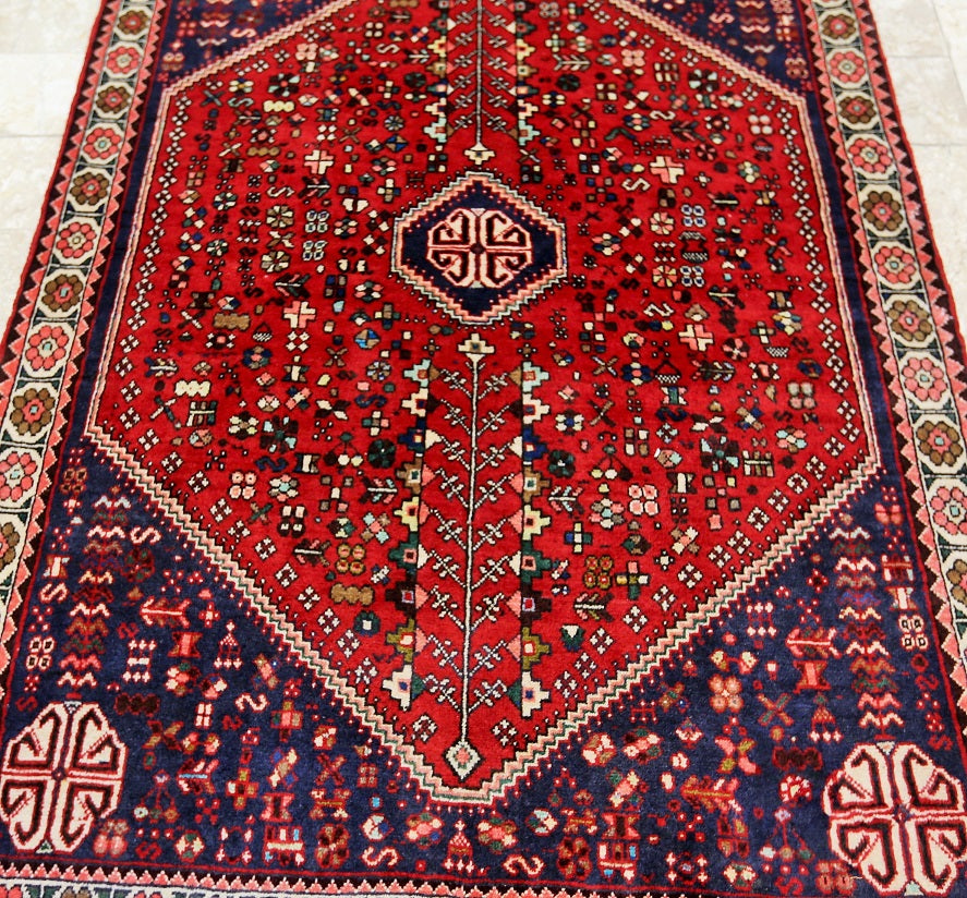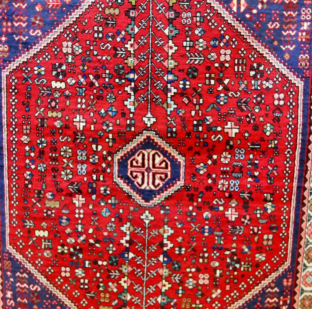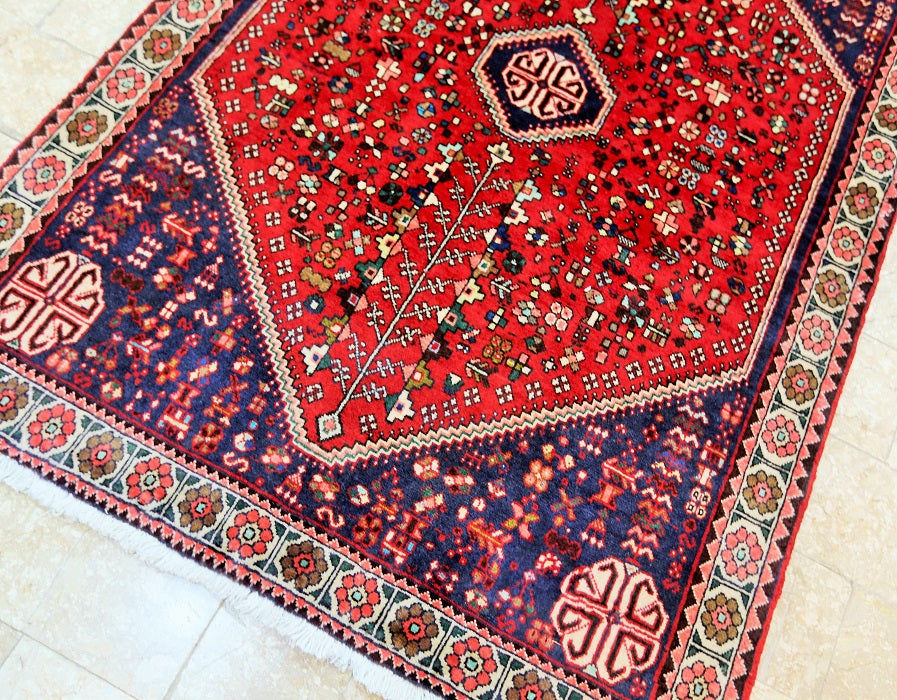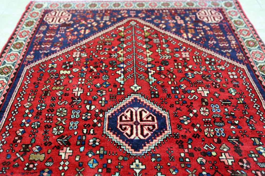 Coffee Table Size Hand Knotted Tribal Persian Abadeh Rug. Above All It Is Hard To Find This Quality Handmade From This Tribe. Pure Hand Spun Wool Pile On Fine Cotton Base. Red Tone Dyed Using Traditional Methods.
