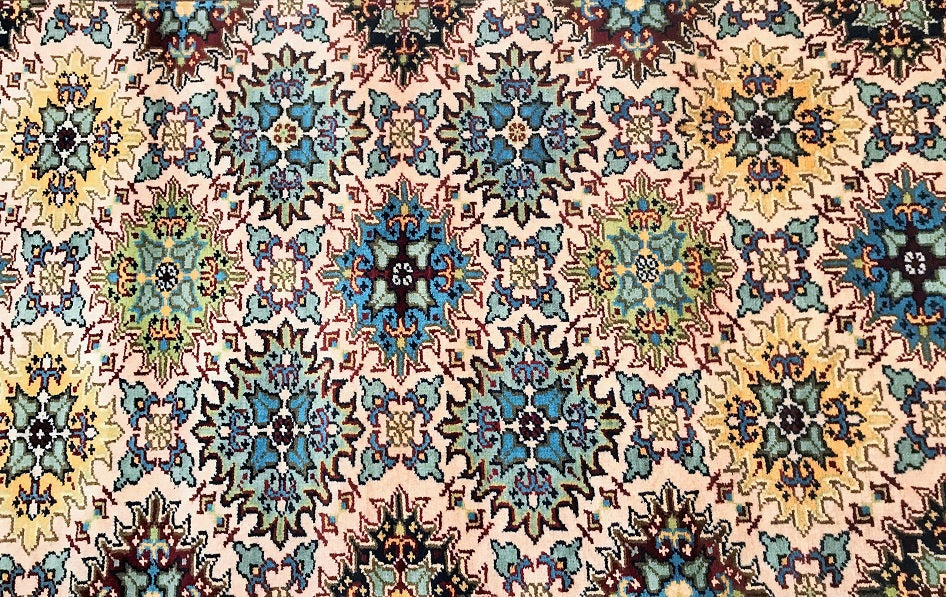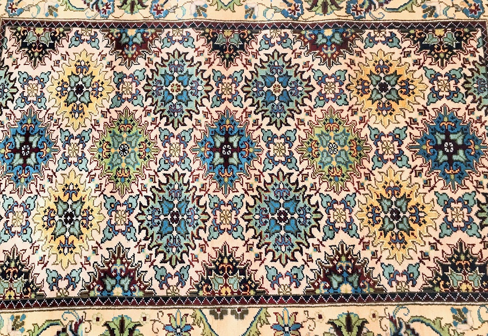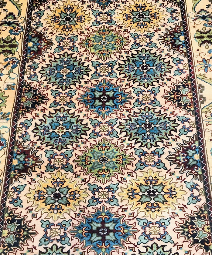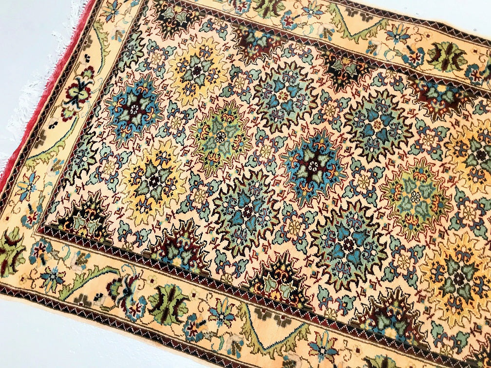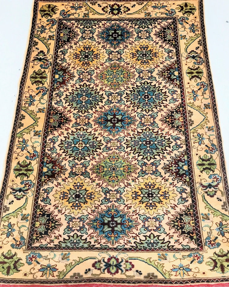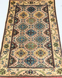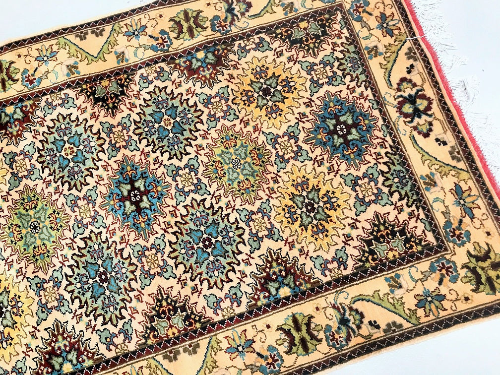 Fine Merino Wool Pile On Cotton Base Afghan Khamyab Rug. Beige Background Dyed Using Traditional Methods. Last Of True Woven Nomadic Art.