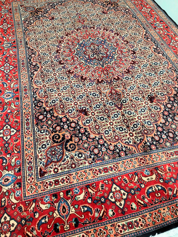 Free Shipping Australia Wide Offered! Certified Handmade Persian Rug 310x210cm Full Room Size Hand Knotted Fish Design Persian Birjand Rug. It Has A Pure Lamb’s Wool Pile On Fine Cotton Base. Beige, Blue And Red Tones Dyed Using Traditional Method...