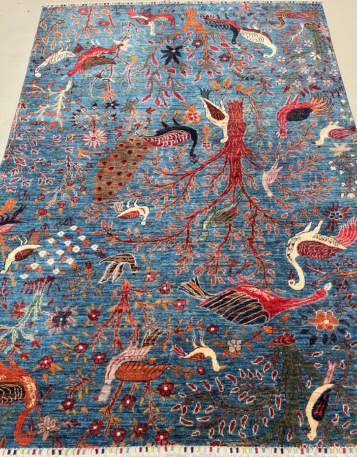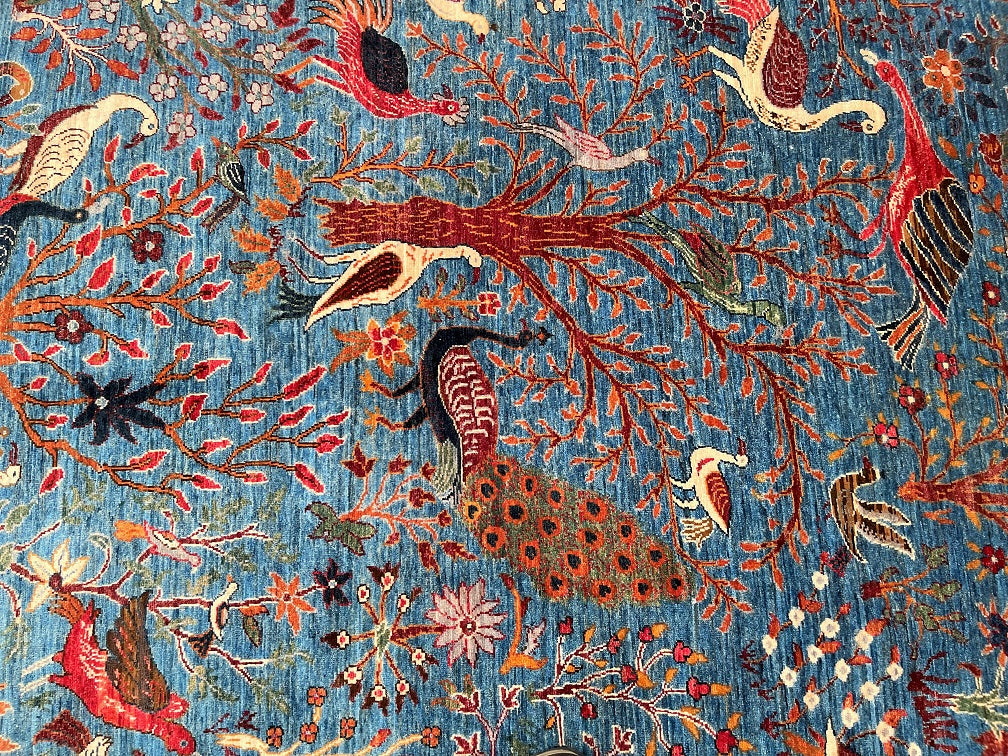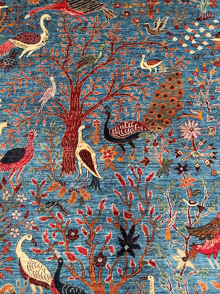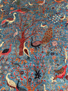 Room Size Garden Of Paradise Genuine Hand Knotted Afghan Chobi Rug. Above All It Has A Pure Hand Spun Wool Pile On Cotton Base. Blue, Beige, Brown, Orange, Red And Green Tones Dyed Using Traditional Methods (Vegetable Dyes). Last of True Woven Nomadic Art.
