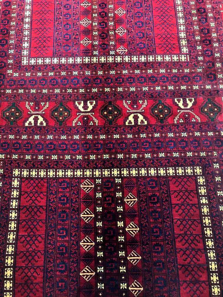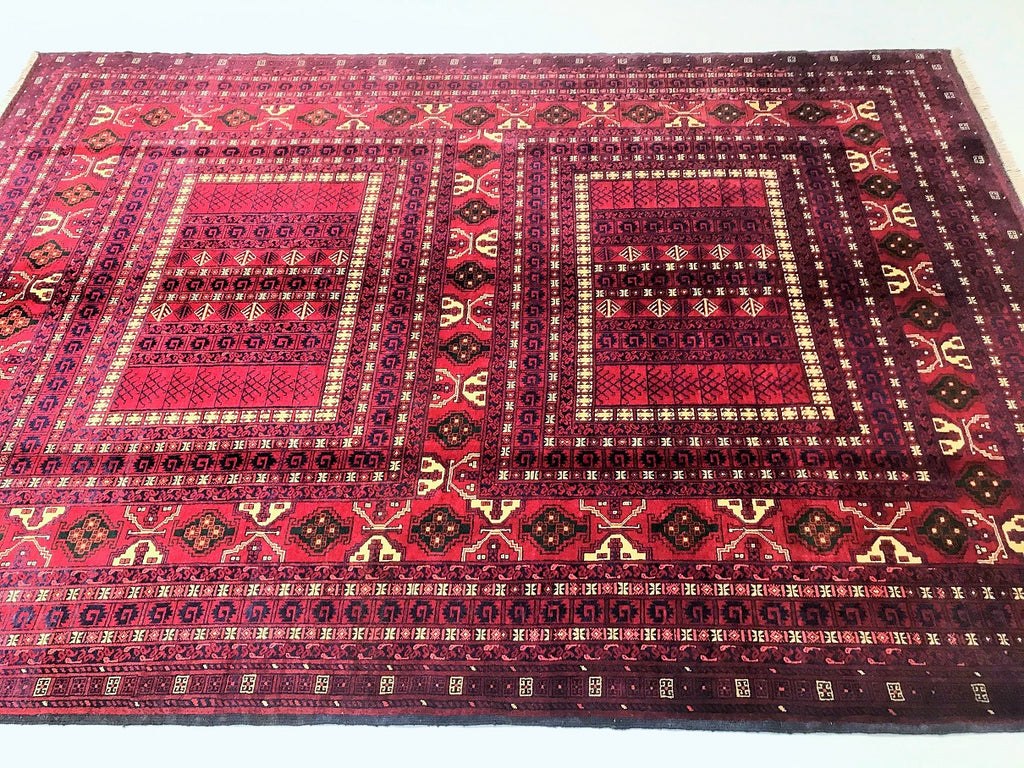 Luxurious Full Room Size Fine Wool Hand Knotted Afghan Khamyab Rug. Highly Decorative Nomadic Hand Crafted Rug. Burgundy/Maroon Tone Dyed Using Traditional Methods. Last Of True Woven Nomadic Art.