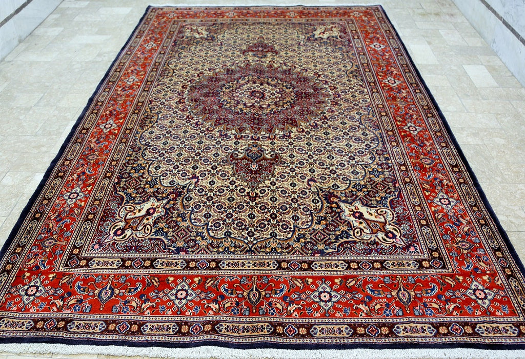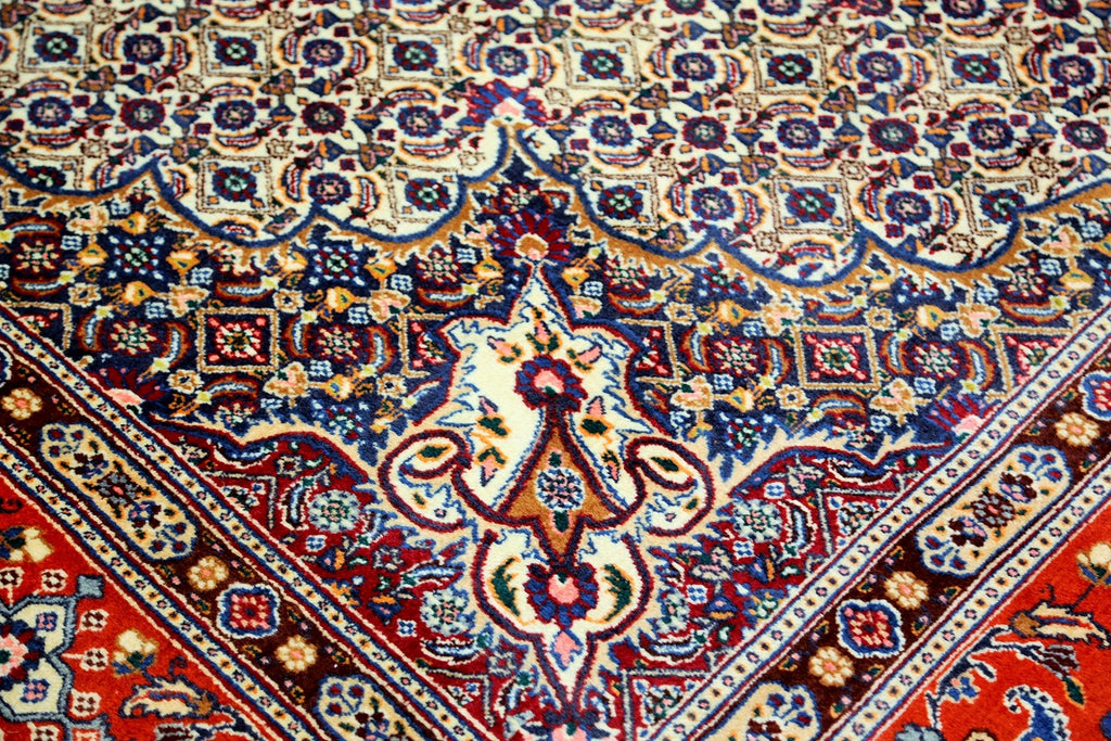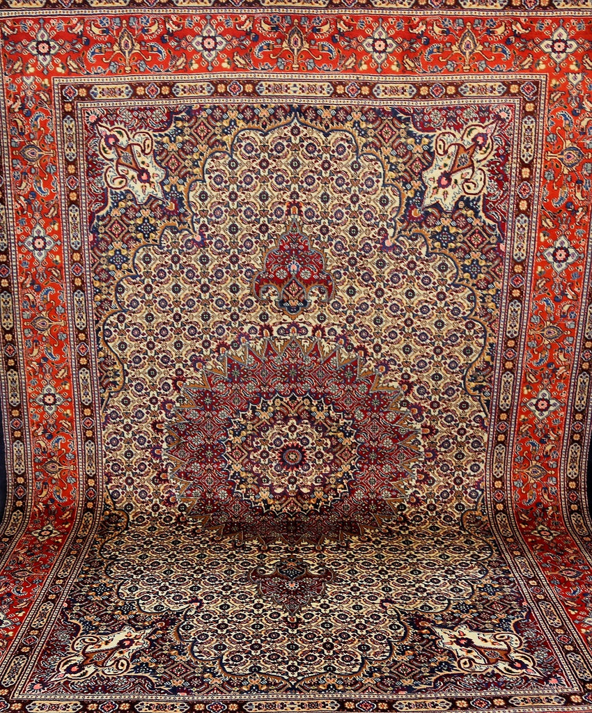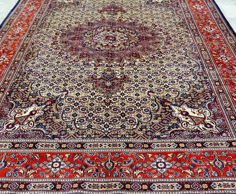 Above All It is A Timeless Pattern Which Is Very Decorative. It Is Also Hard To Find This Quality Hand Made In Larger Sizes. It Has Pure Lamb’s Wool Pile On Fine Cotton Base. Beige And Red Tone Dyed Using Traditional Methods. Dense Quality Carpet From City Of Birjand.