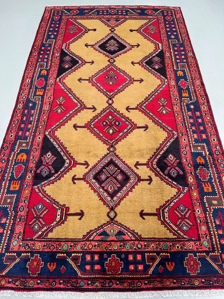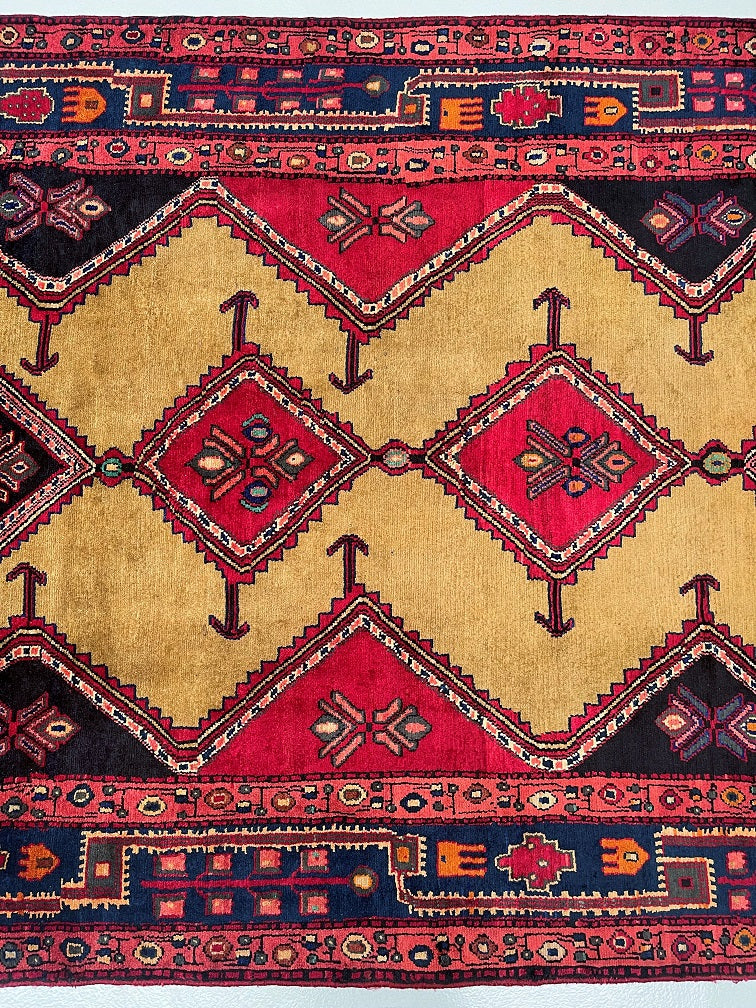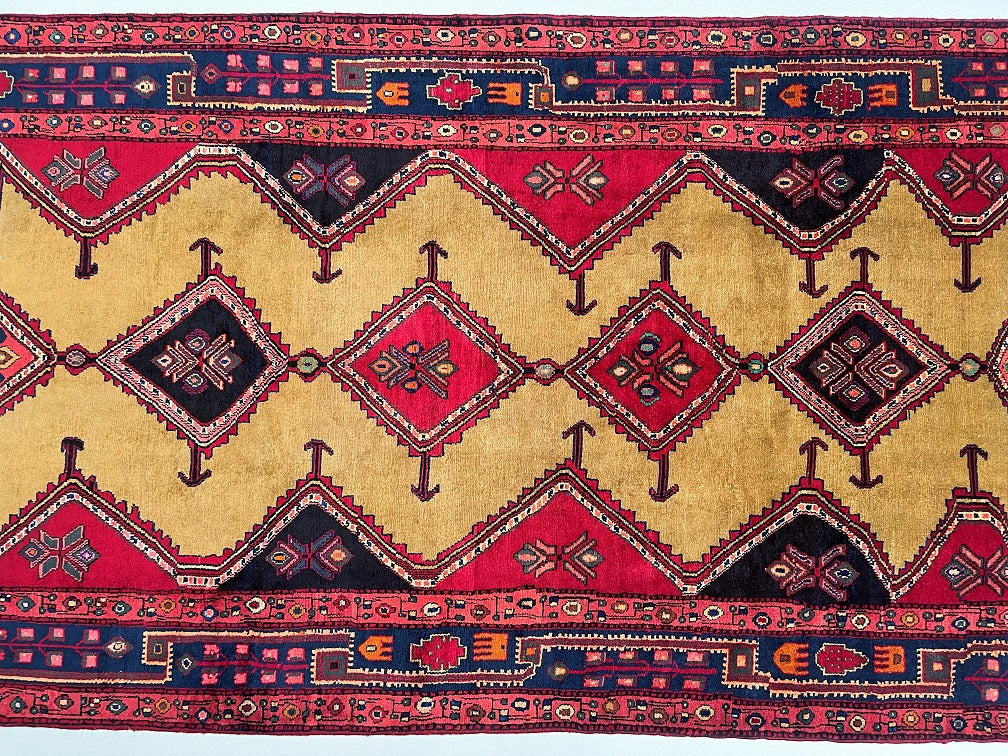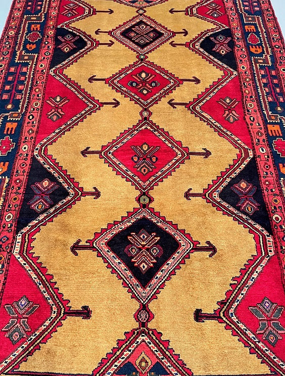 Rare Hand Knotted Persian Kurdish Koliai Rug. Above All It Is Hard To Find Hand Made Rugs From Kurdistan Region. Pure Hand Spun Wool Pile On Cotton Base. Mustard Tone Dyed Using Traditional Methods.
