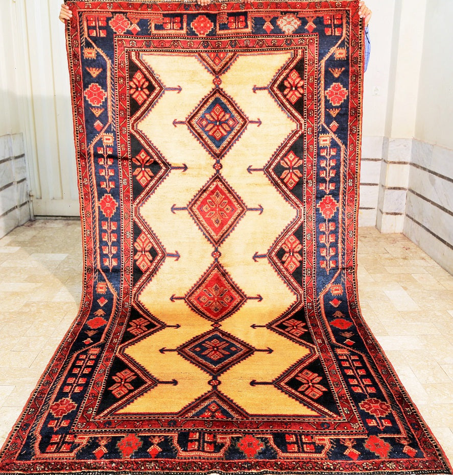 Unique Room Size Hand Knotted Persian Koliai Rug. Above All It Is Hard To Find Hand Made Rugs From Kurdistan Region. Pure Hand Spun Wool Pile On Cotton Base. Beige Tone Dyed Using Traditional Methods.