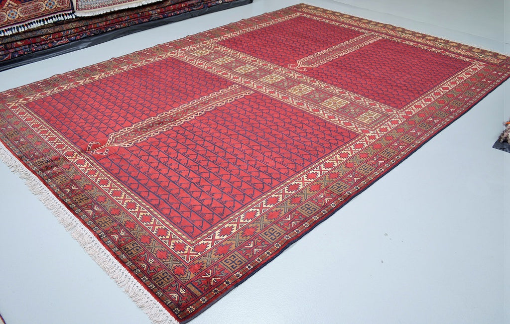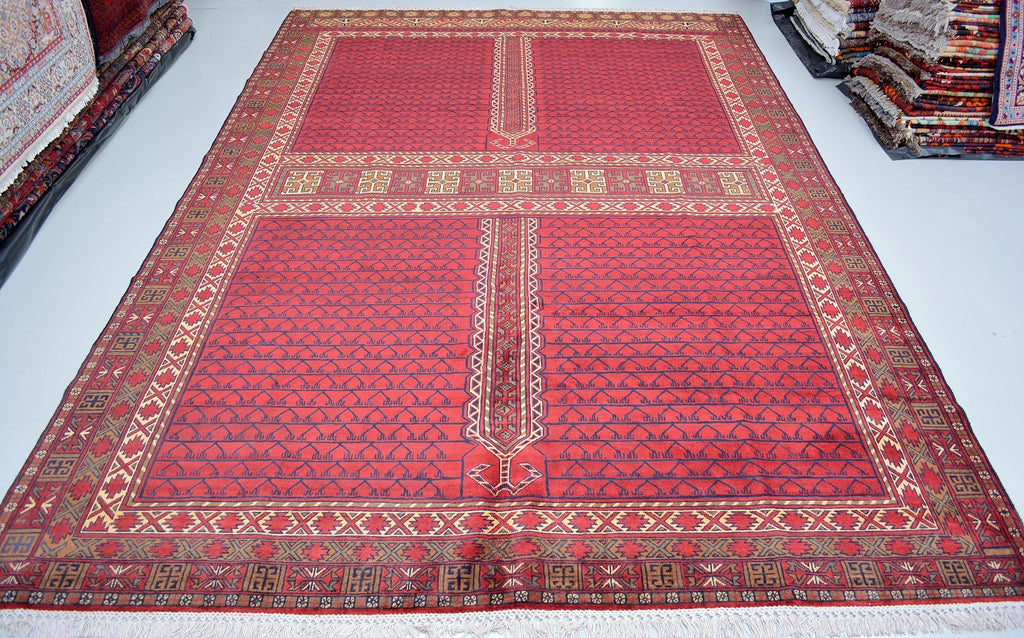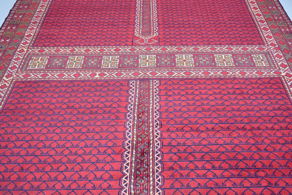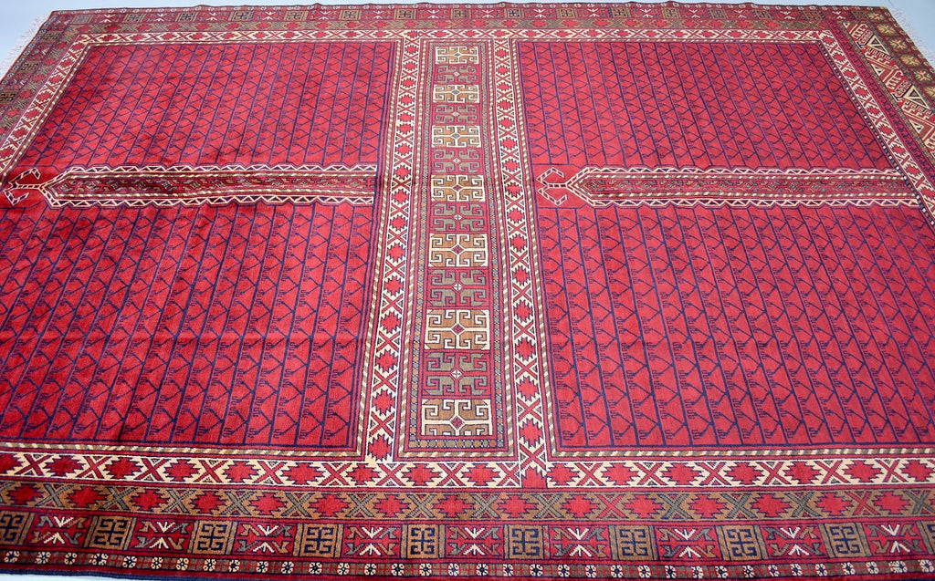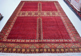 Exquisite Large Room Size Fine Wool Hand Crafted Afghan Hatchlou Rug. Highly Decorative Nomadic Hand Crafted Rug. Burnt Terracotta/Maroon Tone Dyed Using Traditional Methods. Last Of True Woven Nomadic Art.
