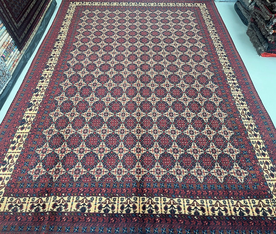 Large Room Size Hand Knotted Afghan Kunduz Rug. Above All It Has A Pure Hand Spun Wool Pile On Wool Base. It Also Has Beige, Brown And Terracotta Tone Dyed Using Traditional Methods.