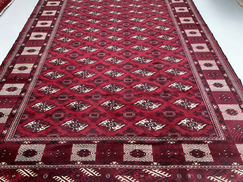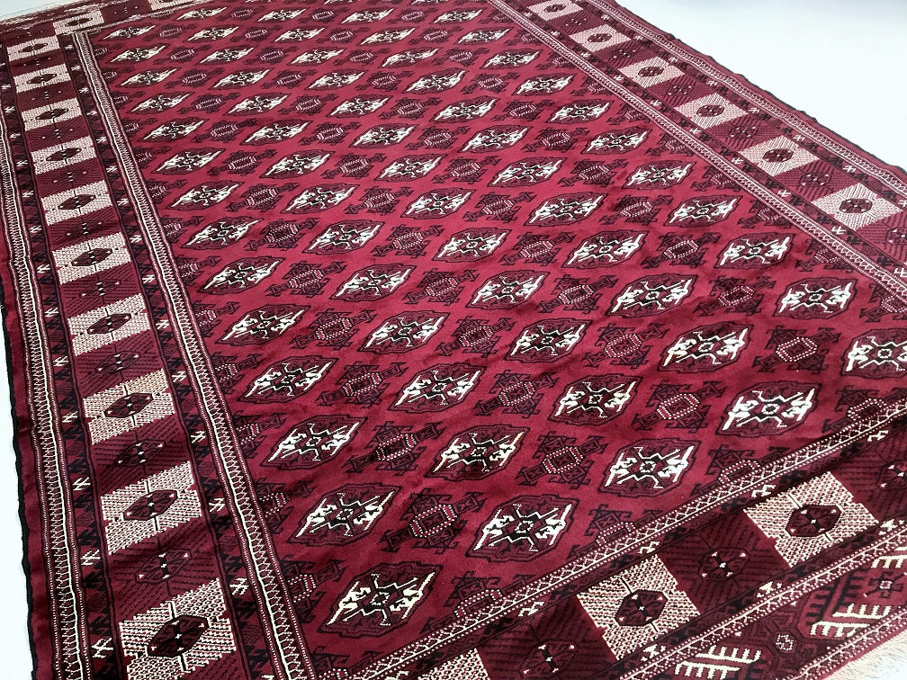 Fine Large Room Size Hand Knotted Tribal Persian Balouchi Rug. Pure Hand Spun Wool Pile On Cotton Base. It Also Has A Dark Brown Tone Dyed Using Traditional Methods.
