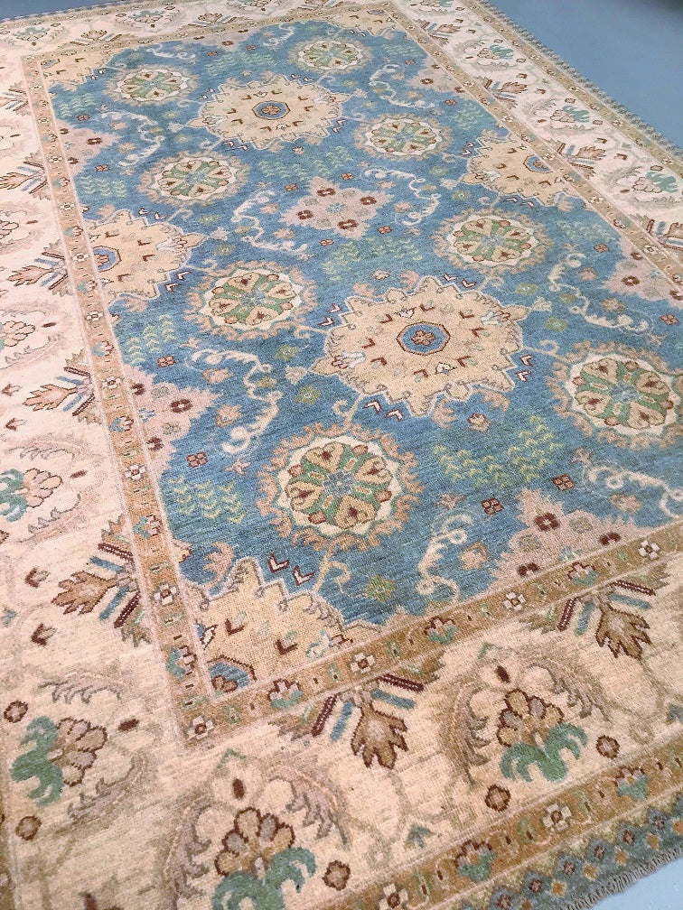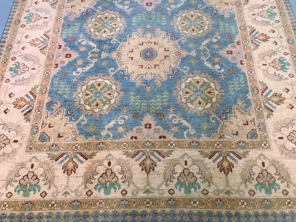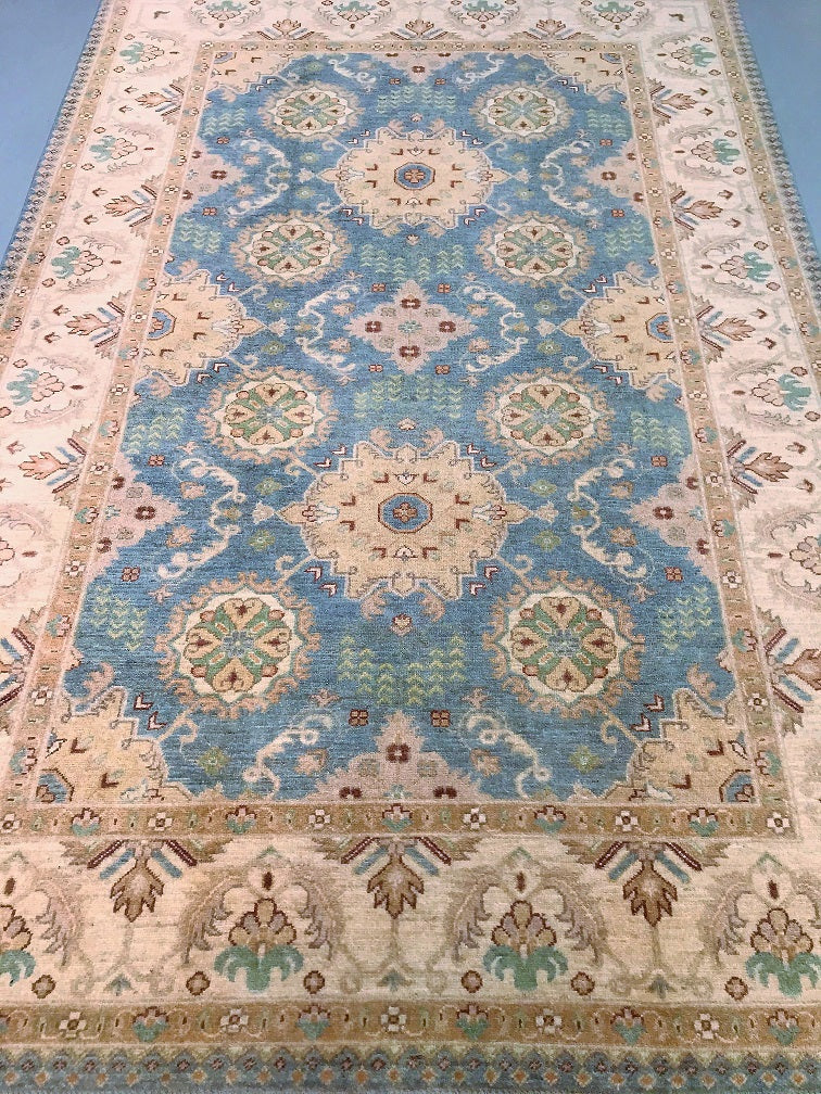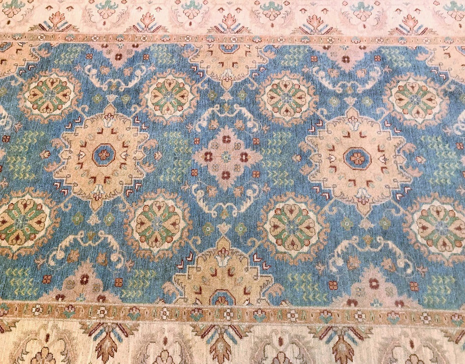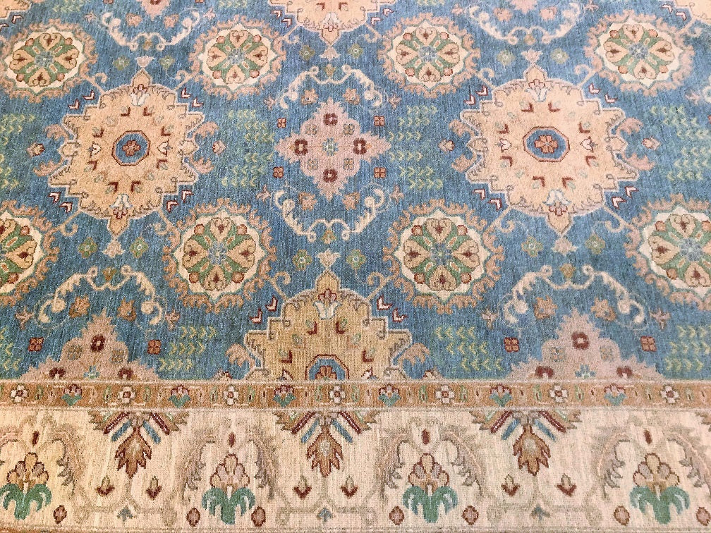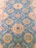 Stunning Full Room Size Hand Knotted Afghan Chobi Rug. Above All It Is Pure Hand Spun Wool Pile On Cotton Base. Gorgeous Light Blue Background Dyed Using Traditional Methods (Vegetable Dyes). Last of True Woven Nomadic Art.
