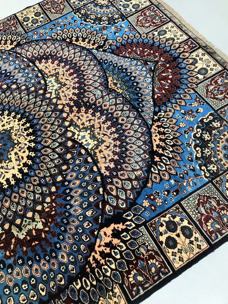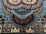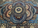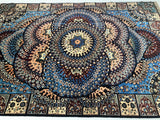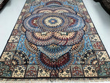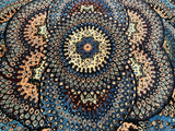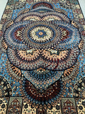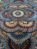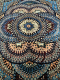 Rare Full Room Size Mandala Design Hand Knotted Afghan Khamyab Rug. Above All It Has A Merino Wool Pile On Cotton Base. Main Colours Are Indigo Blue, Beige, Peach, Burgundy And Light Blue Dyed Using Traditional Methods. Last Of True Woven Nomadic Art.