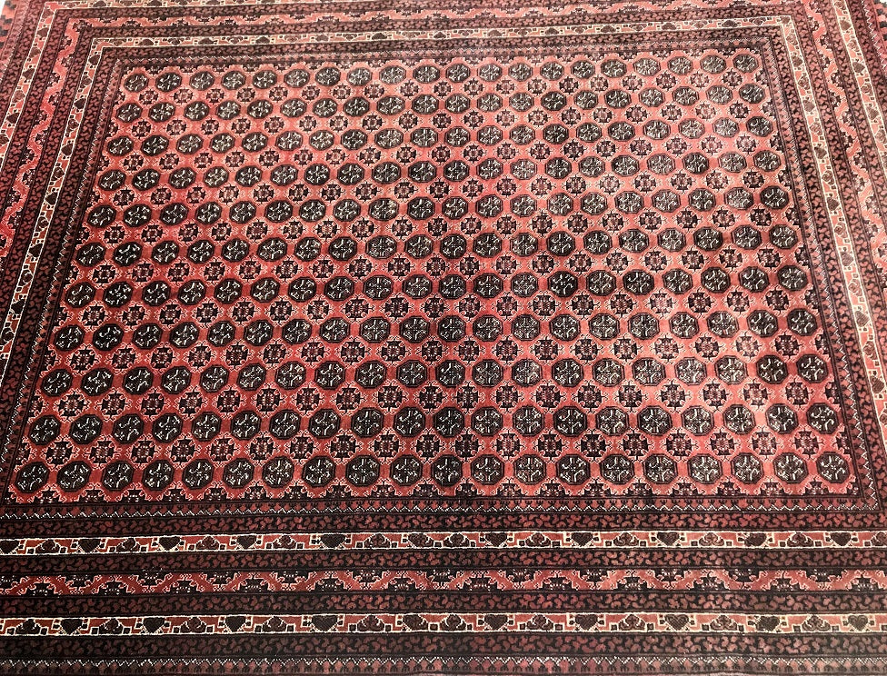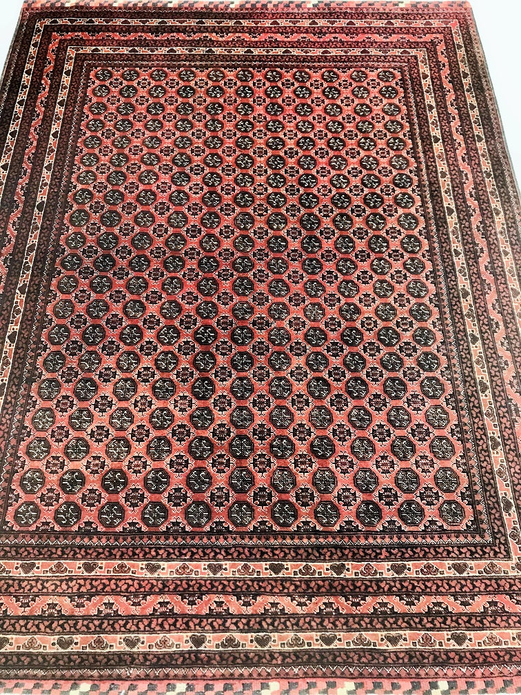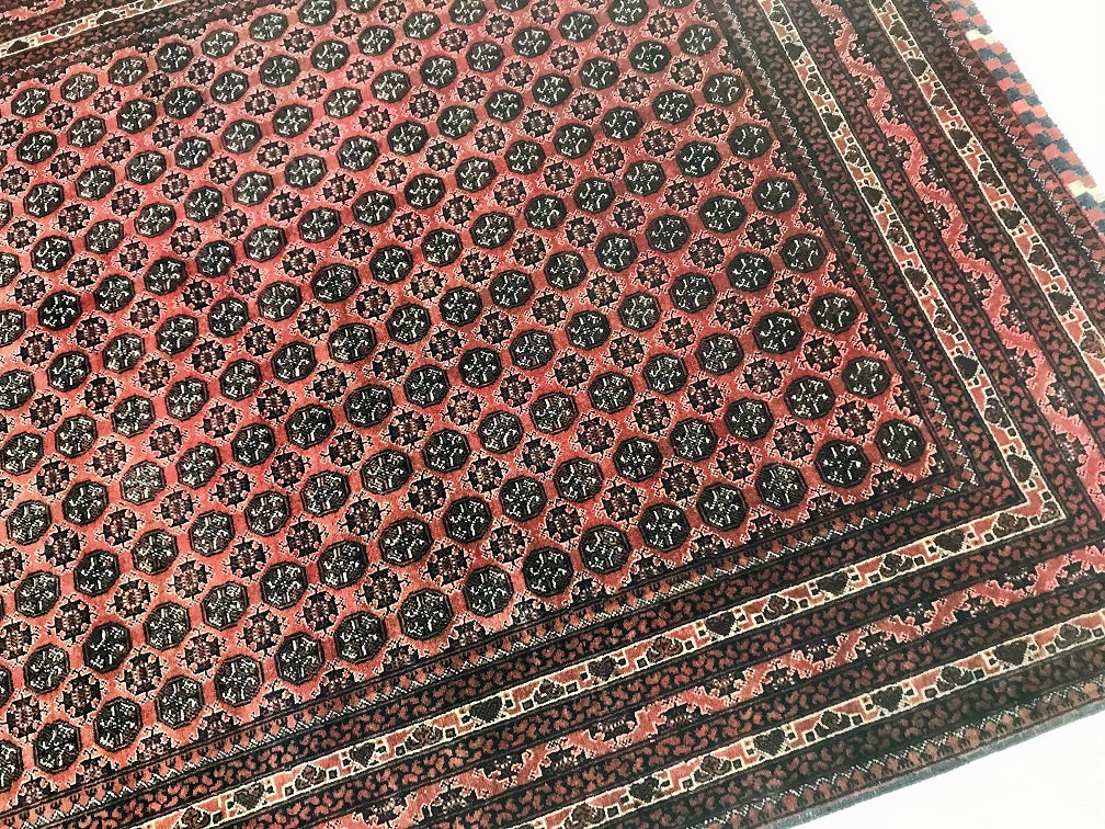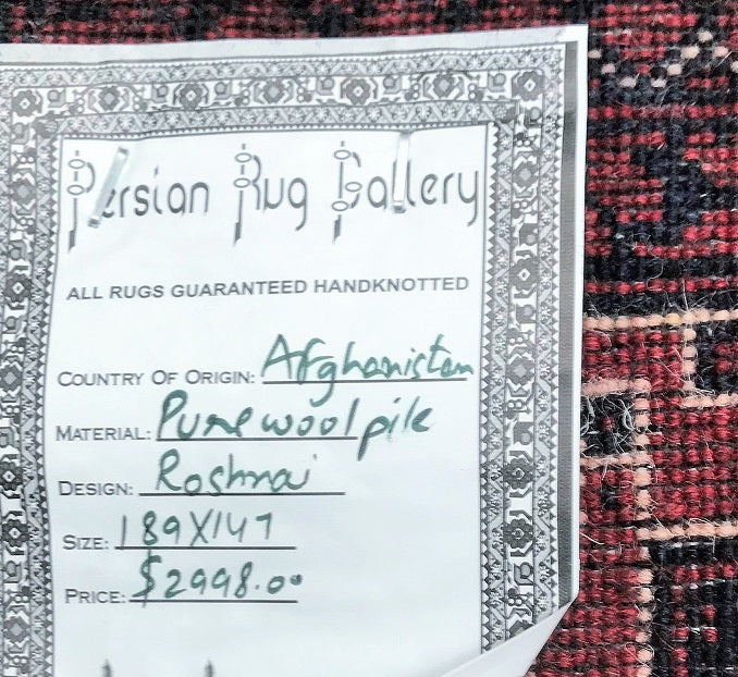 Fine Coffee Table Size Hand Knotted Afghan Roshnai Rug. Above All It Is Pure Hand Spun Wool Pile On Wool Base. It Also Has Rustic Red And Brown Tone Dyed Using Traditional Methods.