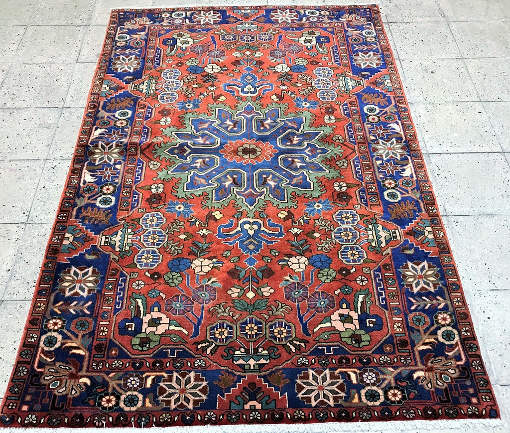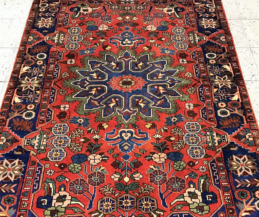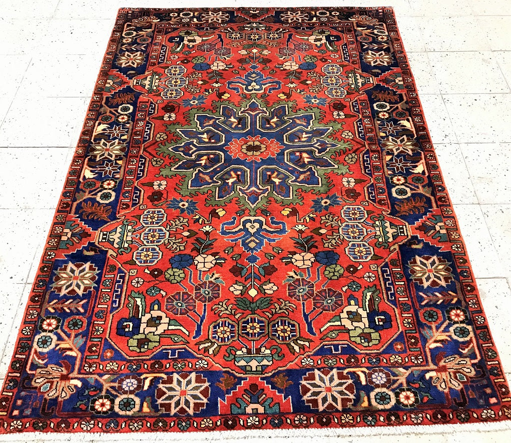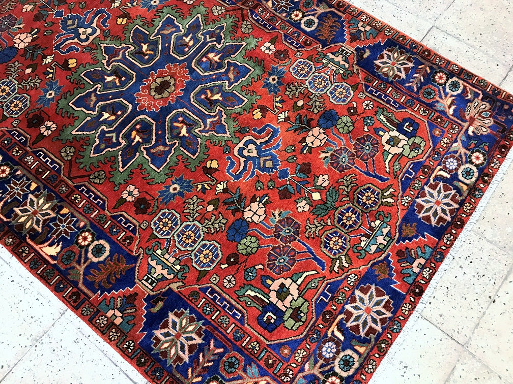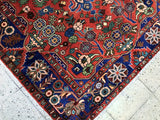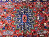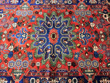 Rare Coffee Table Size Authentic Handmade Village Persian Nahavand Rug. Above All It Is Hard To Find True Hand Made Tribal Pieces Made By The Nomads. It Has A Pure Hand Spun Wool Pile On Cotton Base. It Also Has A Red, Blue, Beige And Green Tone Dyed Using Traditional Methods.