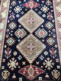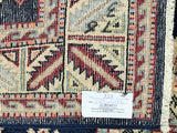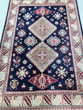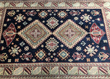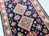 Gorgeous Coffee Table Size Afghan Kazak Rug. Above All It Is Pure Wool Pile On Cotton Base. Navy Blue and Beige Tone Dyed Using Traditional Methods (Vegetable Dyes). Last Of True Woven Tribal Art.