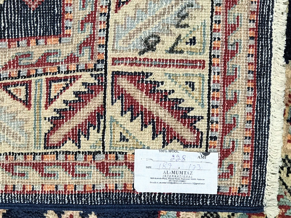 Certified Handmade Afghan Kazak Rug 189x123cm