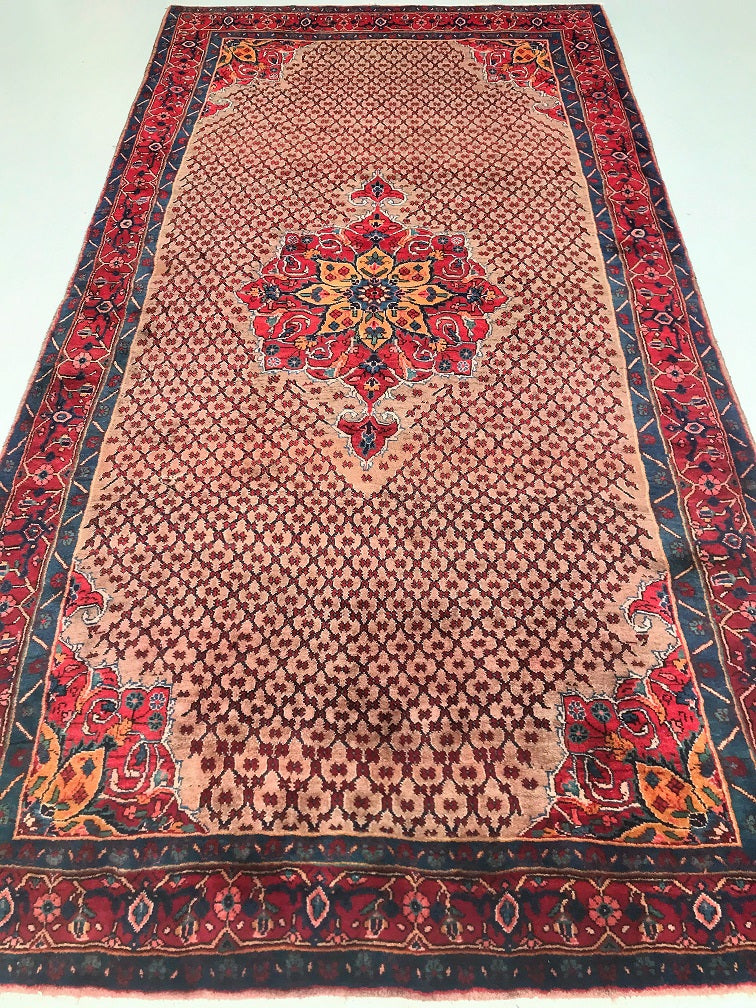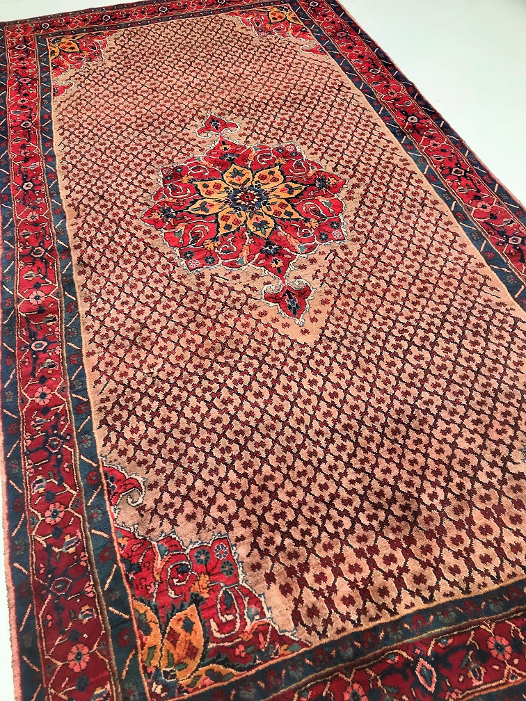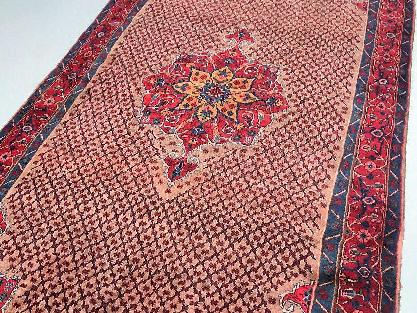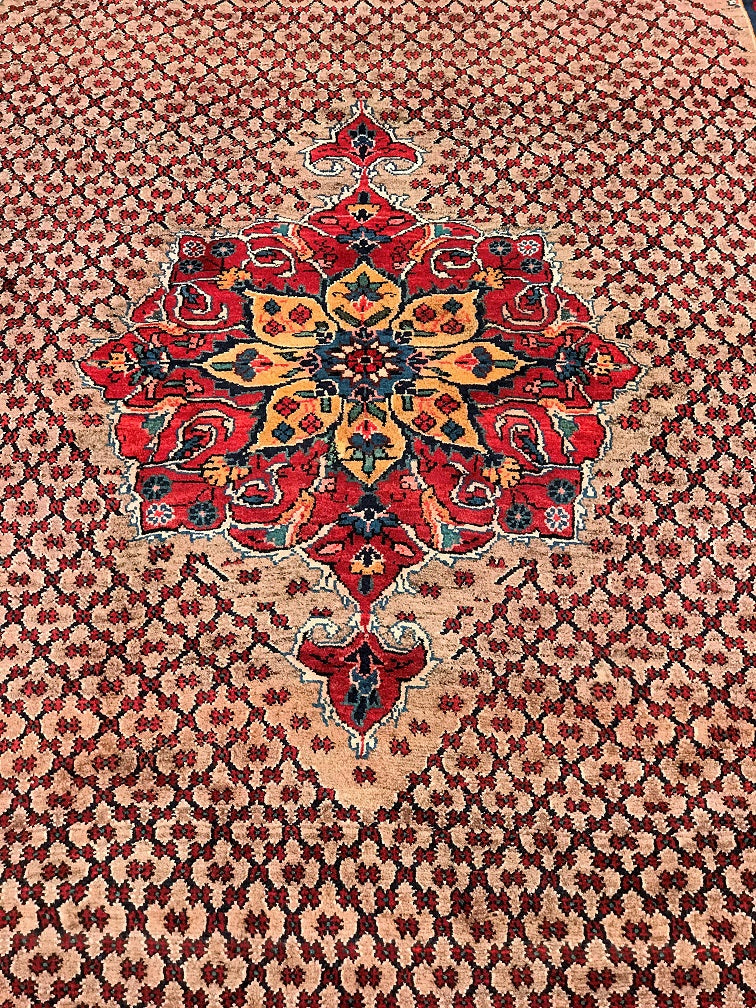 Discounted Room Size Hand Knotted Vintage Kurdish Koliai Rug. Above All It Is Hard To Find Handmade Rugs From Kurdistan Region. Pure Hand Spun Wool Pile On Cotton Base. Beige and Light Brown and Red Tone Dyed Using Traditional Methods.