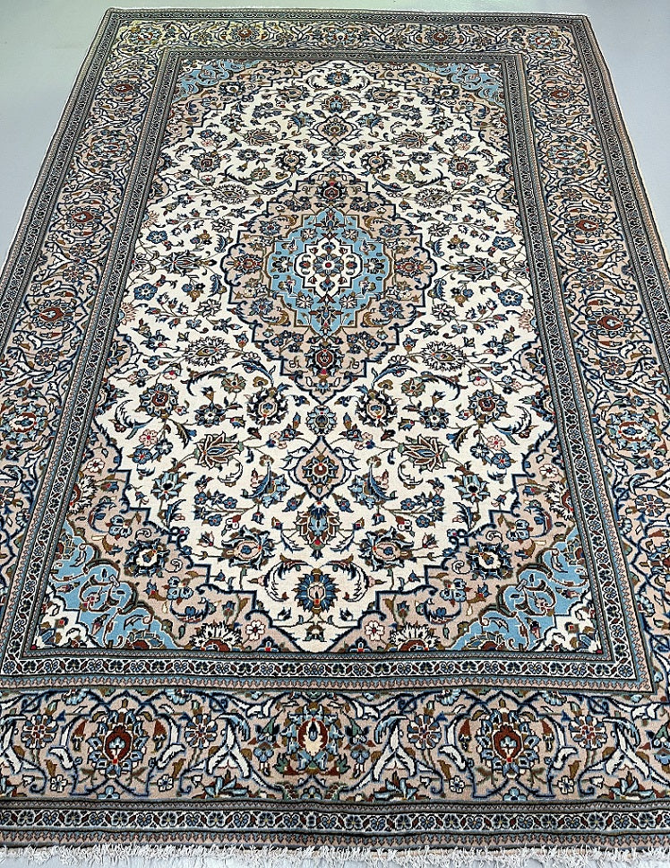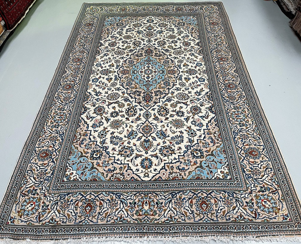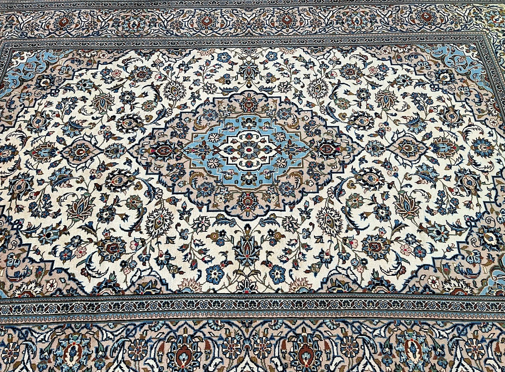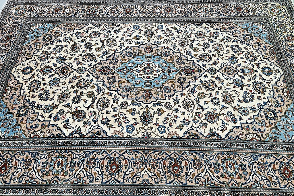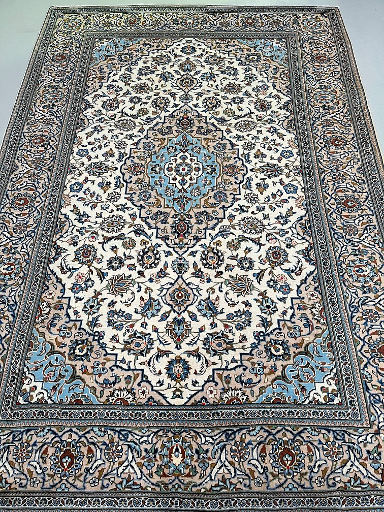 Full Room Size Authentic Oriental Kashan Carpet. Persian Rugs Are Also Known As Oriental Carpets In The Western World. Above All It Has A Pure Wool Pile On Cotton Base. Gorgeous Beige, Blue, Brown And Green Tones Dyed Using Traditional Methods.