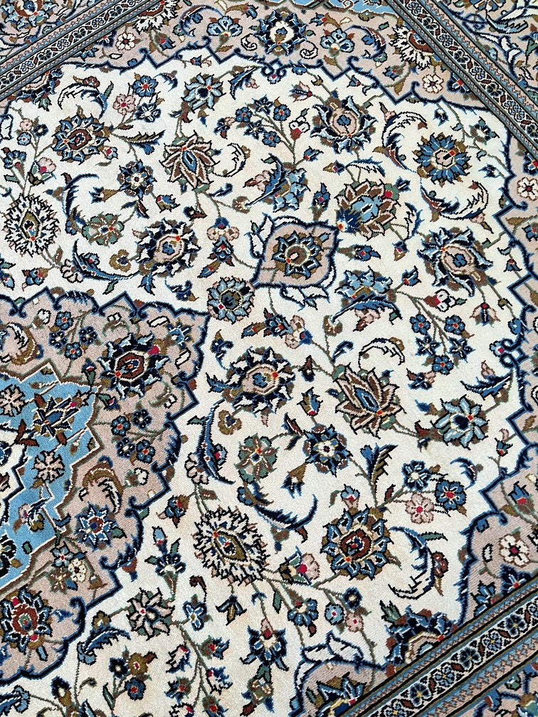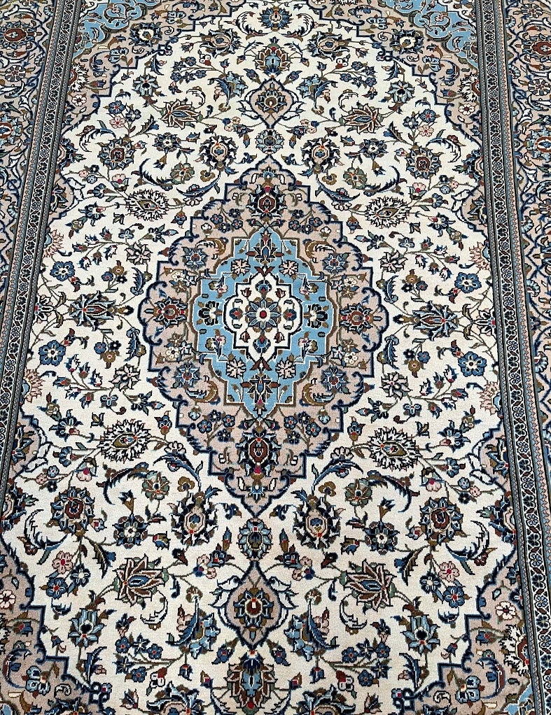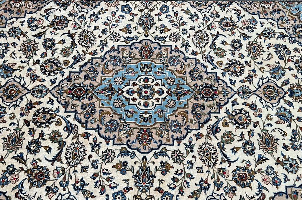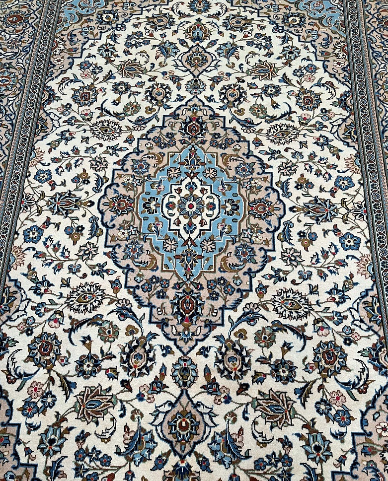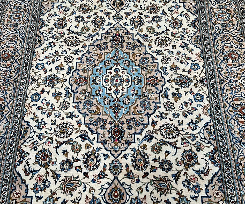 Full Room Size Authentic Oriental Kashan Carpet. Persian Rugs Are Also Known As Oriental Carpets In The Western World. Above All It Has A Pure Wool Pile On Cotton Base. Gorgeous Beige, Blue, Brown And Green Tones Dyed Using Traditional Methods.