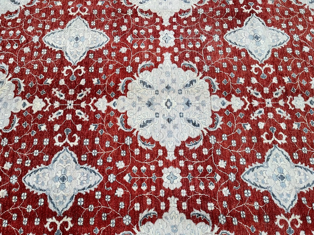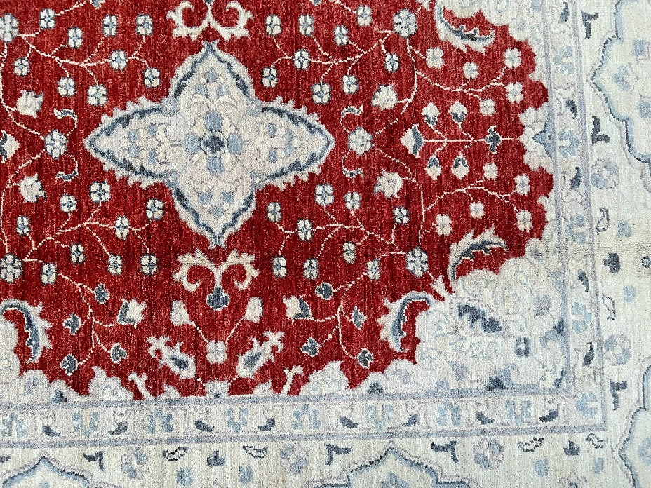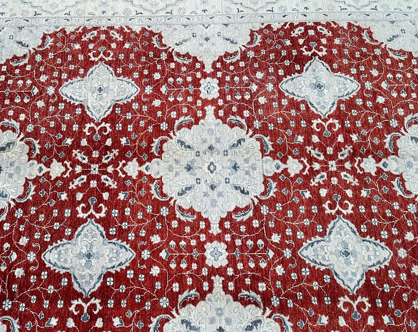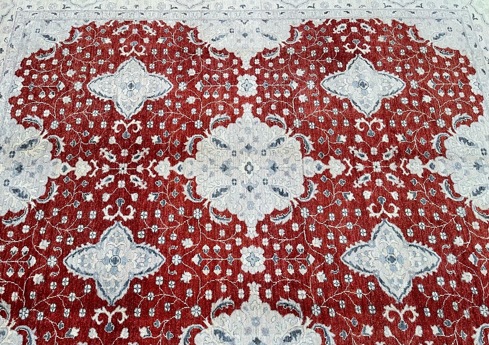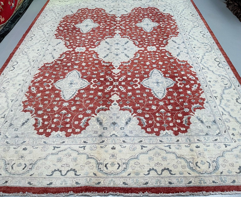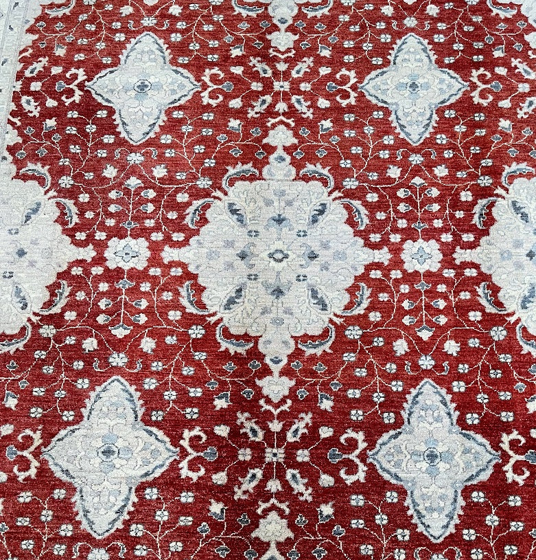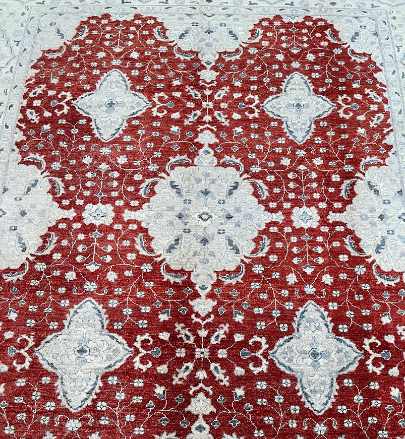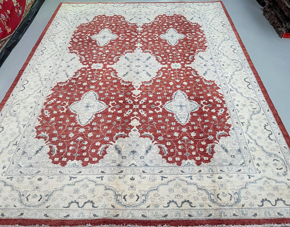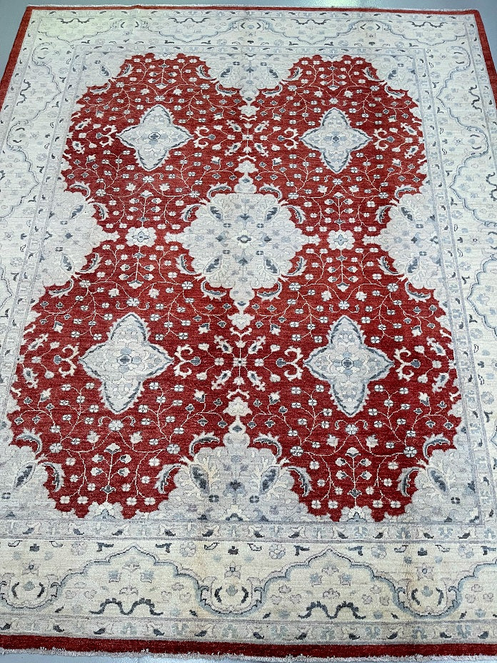 Full Room Size Authentic Hand Knotted Afghan Chobi Rug. Above All It Has A Pure Hand Spun Wool Pile On Cotton Base. Terracotta Red, Beige, Grey And Soft Green/Blue Tones Dyed Using Vegetable Dyes. Last Of True Woven Nomadic Art.