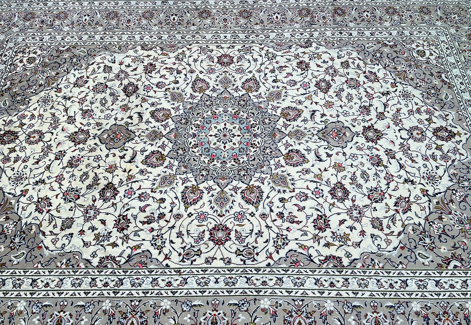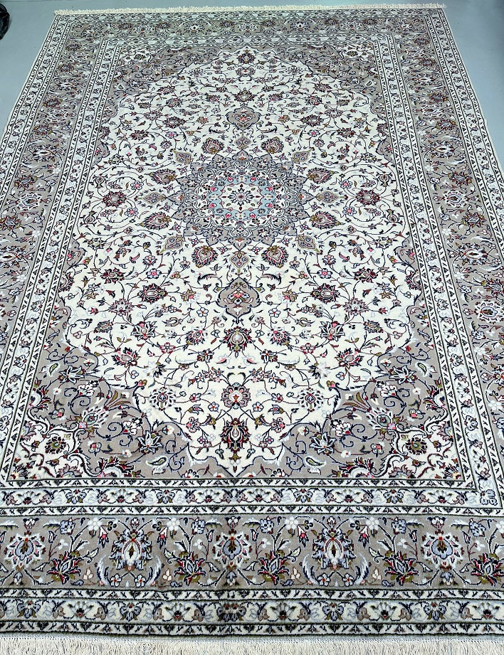 Free Shipping Australia Wide Offered! Certified Hand Knotted Persian Rug 347x248cmLarge Room Size Authentic Handmade Persian Kashan Rug. Above All This Rug Has A Pure Lamb’s Wool Pile On Cotton Base. Beige, Light Brown, Green, Pink and Blue Tones ...