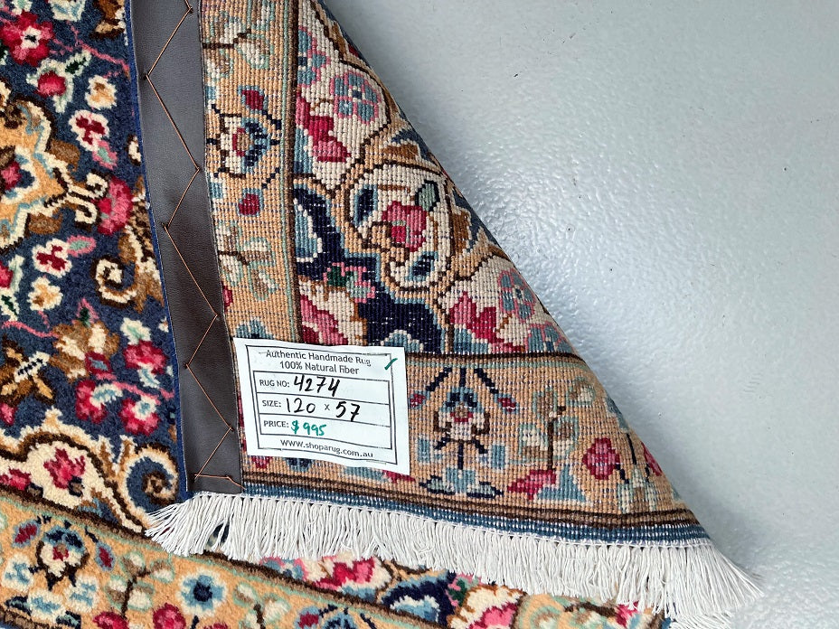 Certified Hand Knotted Persian Rug 120x57cm