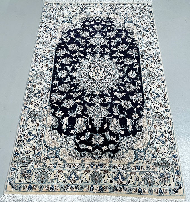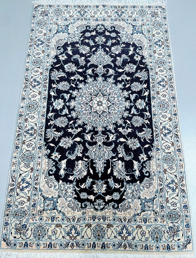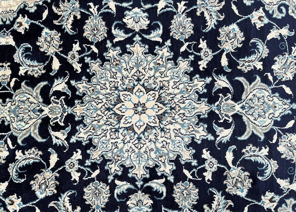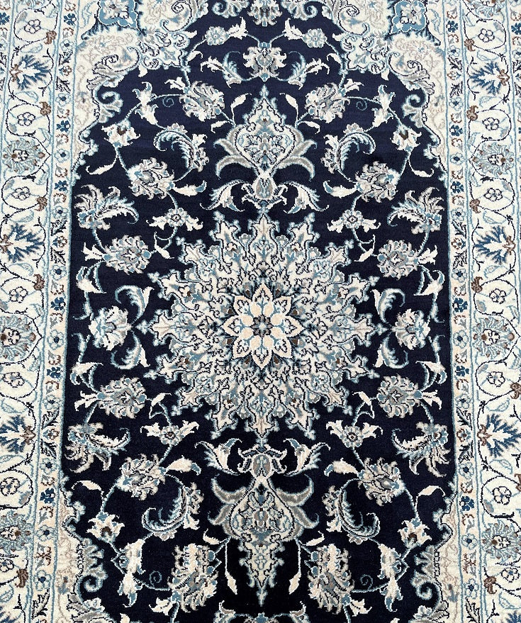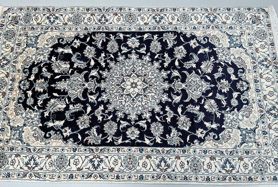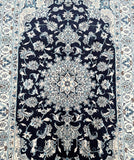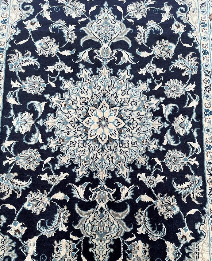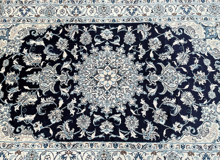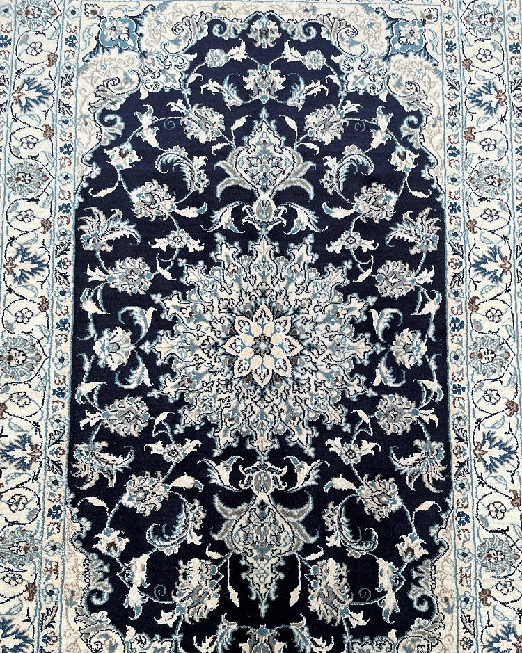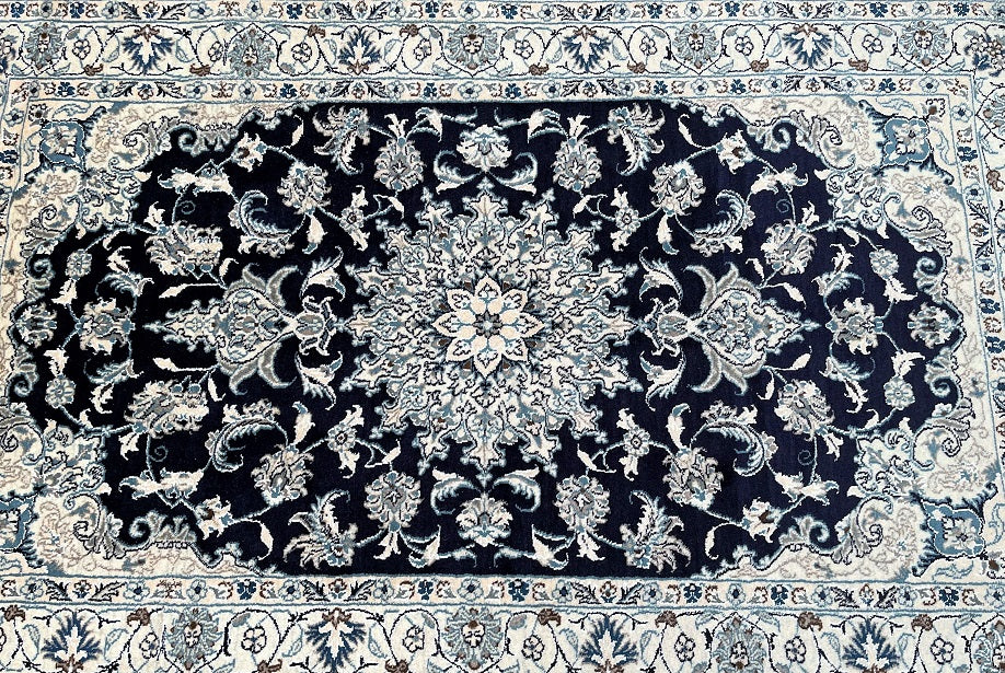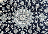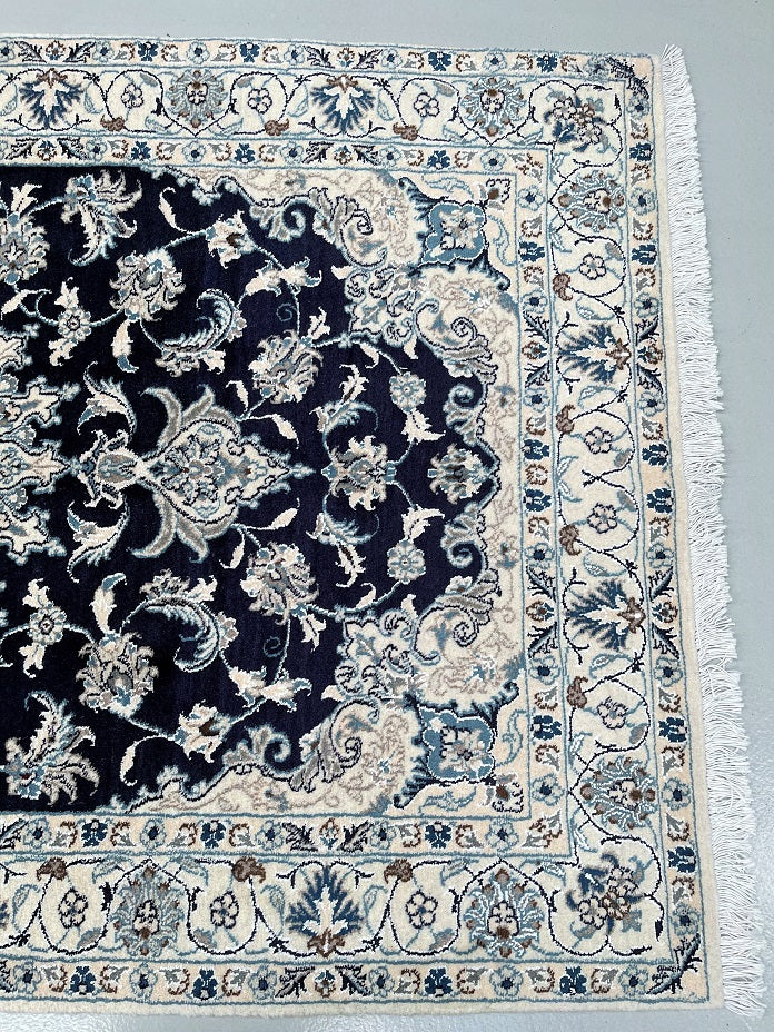 Dense Handmade Persian Nain Carpet. Above All It Has A Pure Wool Pile On Cotton Base. Indigo Blue, Beige, Grey And Light Brown Tones Dyed Using Traditional Methods.