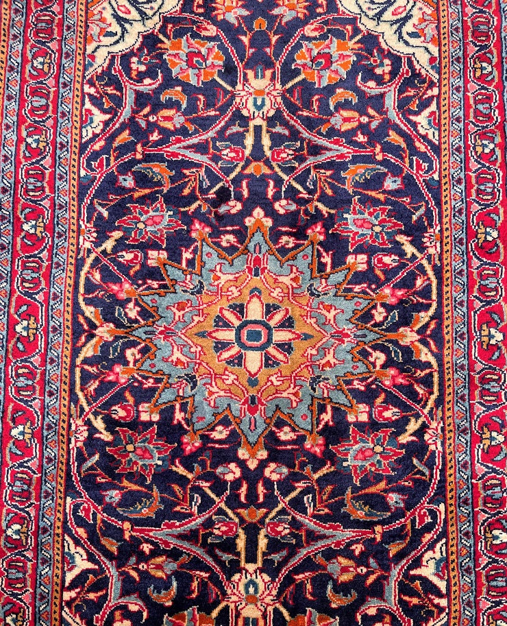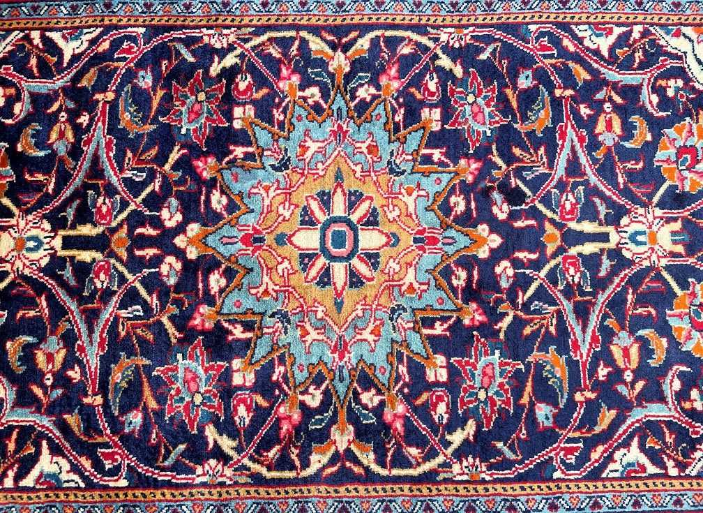 Authentic Handmade Persian Sarough Short Runner Rug. Above All Rugs From This Region Are Under Appreciated And Are Of Higher Quality Than The Price Reflect. It Has A Soft Pile That You Will Enjoy How It Will Feel Underneath Your Feet. It Is Also Has A Lamb’s Wool Pile On Cotton Base. It Has An Indigo Blue Tones Which Was Dyed Using Traditional Methods.