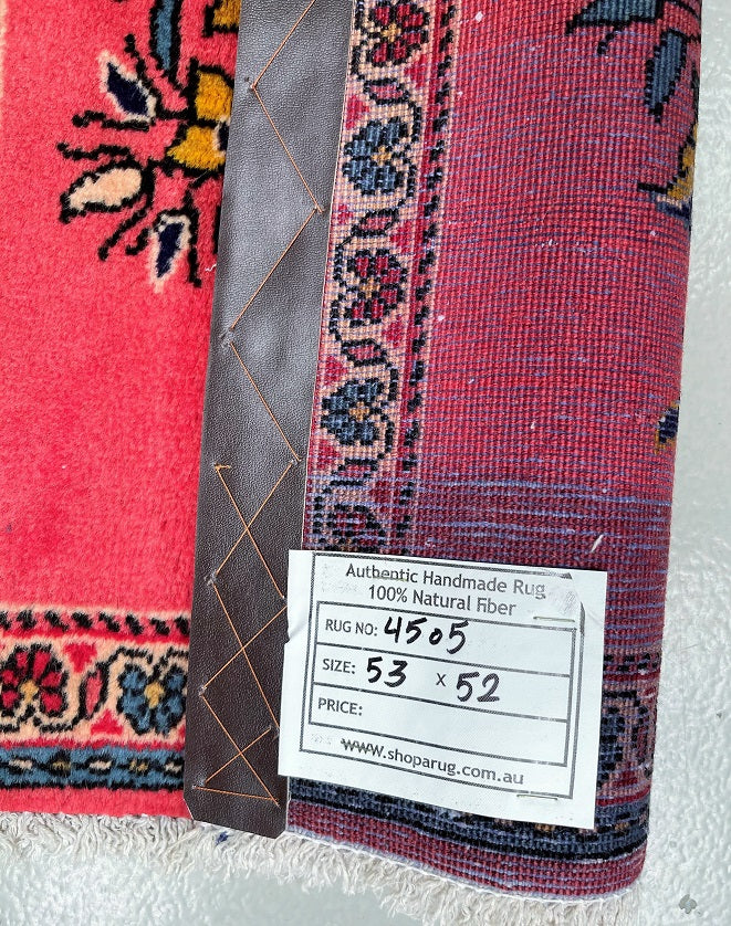 Fine Door Mat Size Authentic Handmade Vintage Persian Sarough Rug. Above All It Has A Pure Lamb’s Wool Pile on Cotton Base. Pink Tones Dyed Using Traditional Methods.