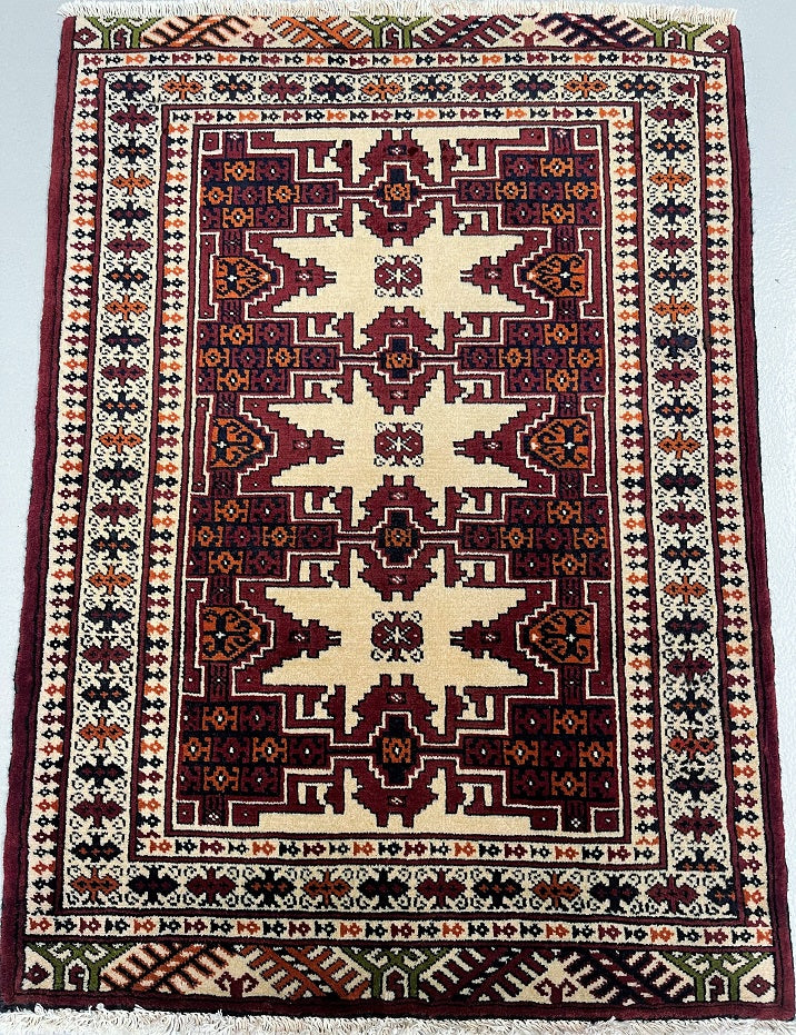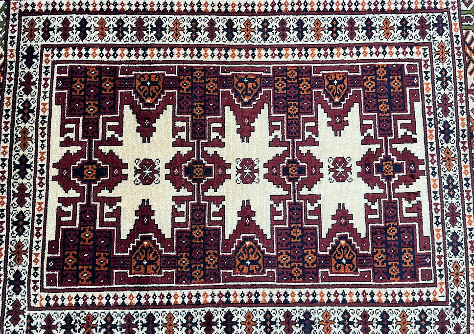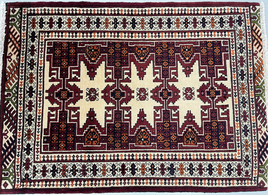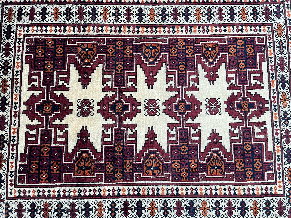 Authentic Handmade Tribal Persian Turkoman Rug. Above All It Is Pure Hand Spun Wool Pile On Wool Base. Beige, Dark Brown, Orange, Black And Green Tones Dyed Using Traditional Methods.