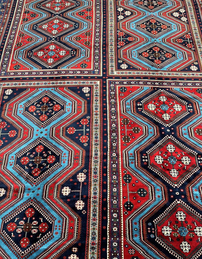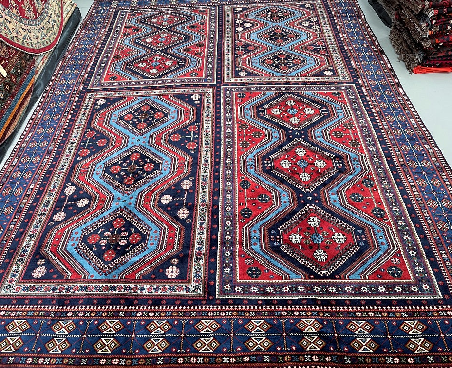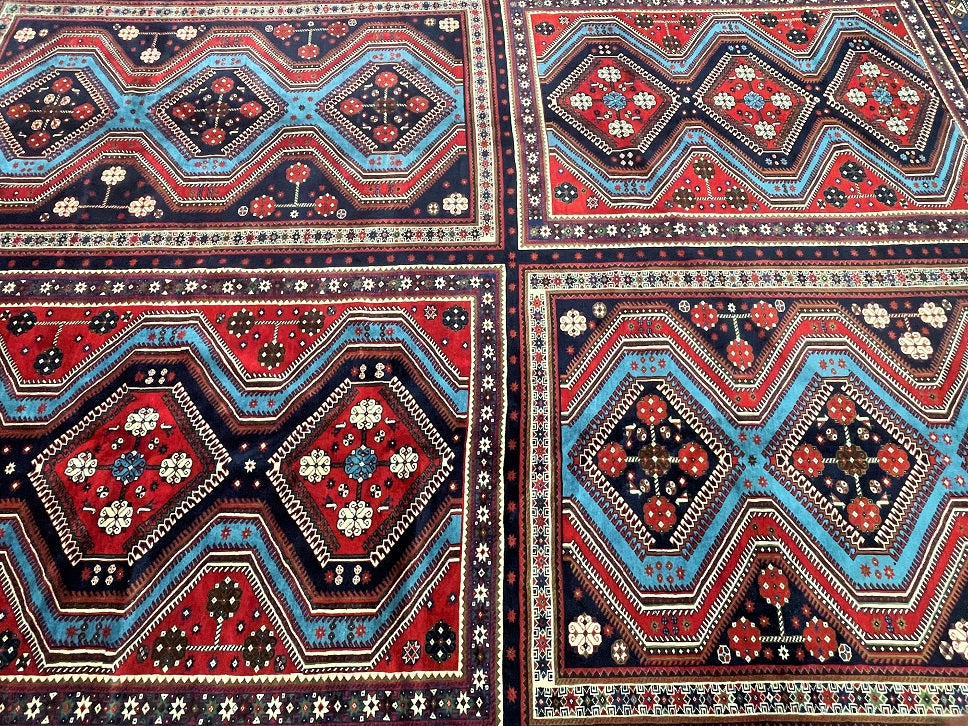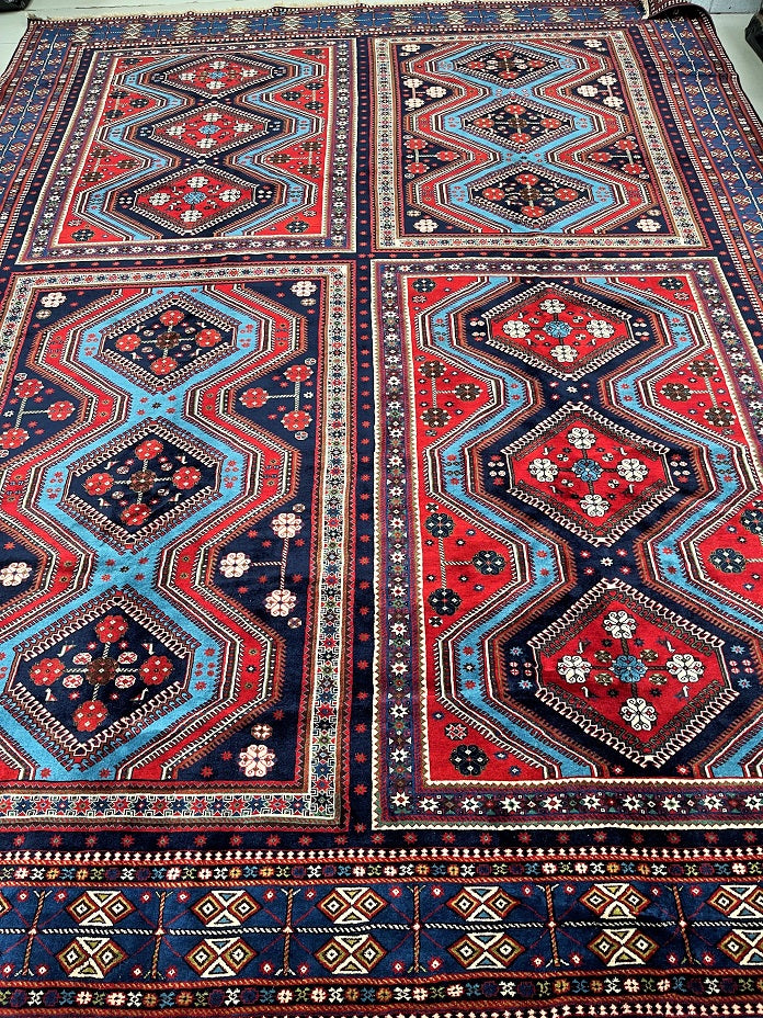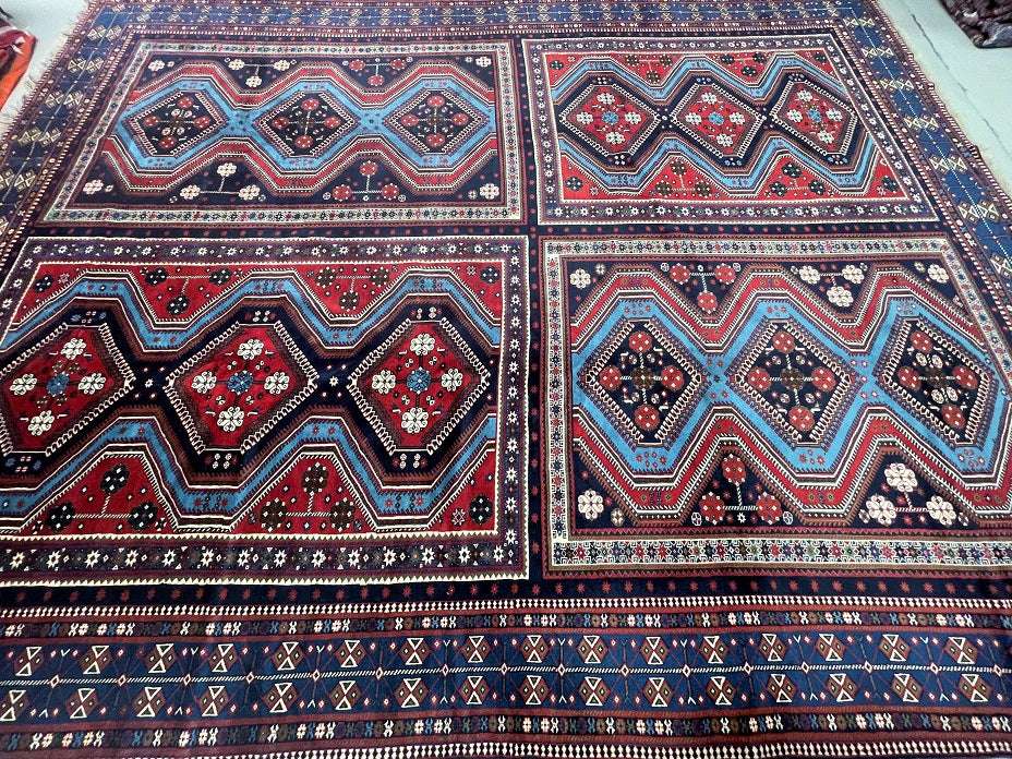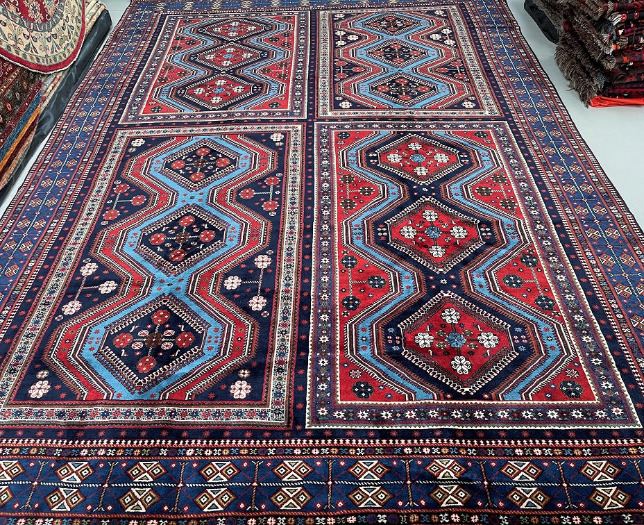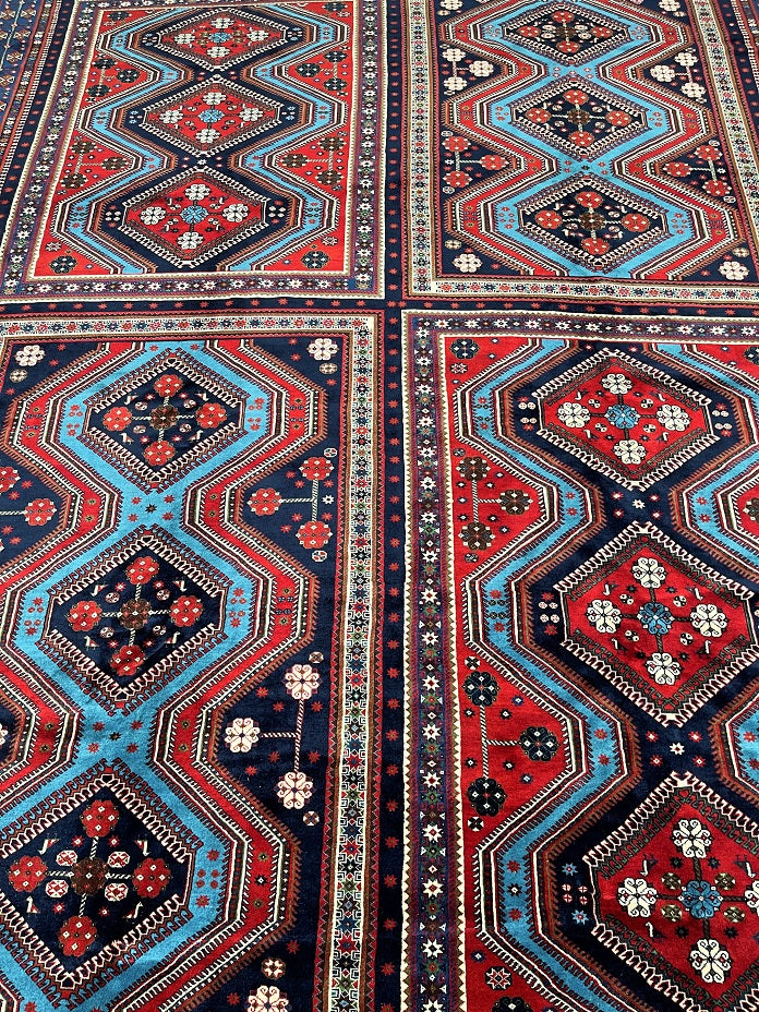 Massive Room Size Authentic Handmade Persian Yalameh Rug. Above All It Is The Only 4x3m Yalameh Rug I Have Seen In Past 20 Years. It Has A Superb Pure Hand Spun Wool Pile On Wool Base. It Also Has A Variation Of Blue Tone Dyed Using Traditional Methods.