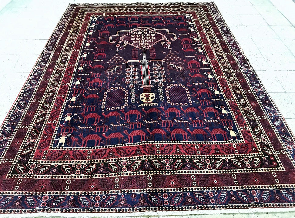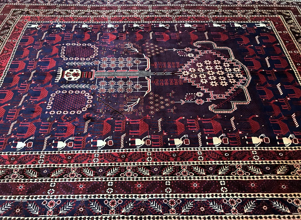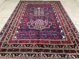 Amazing Full Room Size Handmade Vintage Persian Afshari Rug. Above All This Is A Very Unique And Collectible Piece. It Also Has A Dense Hand Spun Wool Pile On Cotton Base. Deep Burgundy/Dark Brown And Indigo Blue With Tone Dyed Using Traditional Methods.