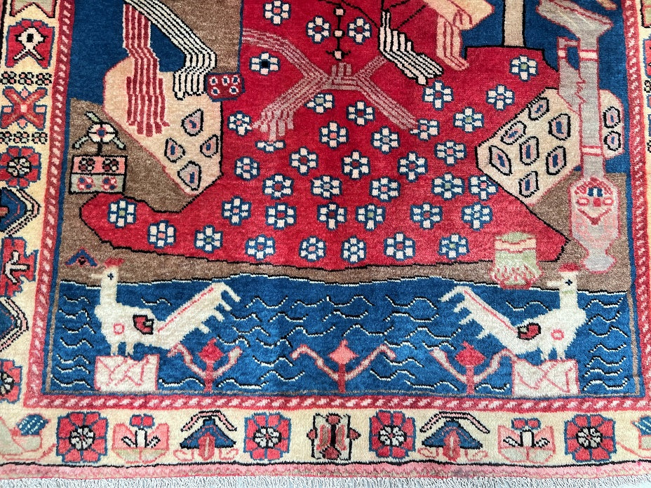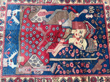 Rare Authentic Handmade Tribal Persian Nahavand Rug. Above All It Also Has A Pure Hand Spun Wool Pile On Cotton Base. It Also Has A Beige, Blue, Red, Pink And Brown Tones Dyed Using Traditional Methods.